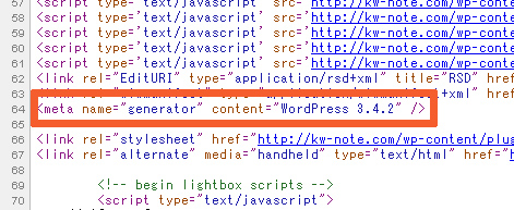 HTMLソースに吐き出されているワードプレスのバージョン