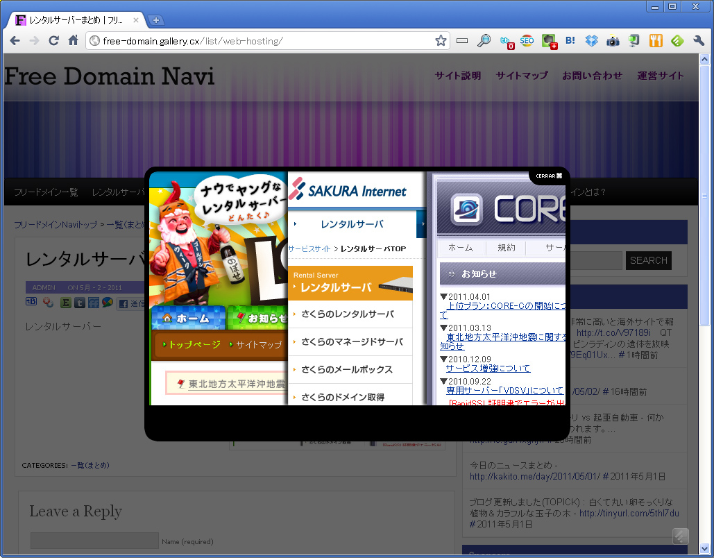 1つ1つインストールして確認するのも手間もかかりますので、導入しているサンプルサイトへのリンクも付け、実際の動作も確認しながら比較できるようにしてみました。