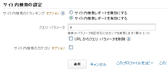 少し下にスクロールすると「サイト内検索の設定」があるので、「サイト内検索レポートを有効にする」にチェックを入れ「クエリ パラメータ」には「s」と入力し適用ボタンを押します。 - 解析ページについて