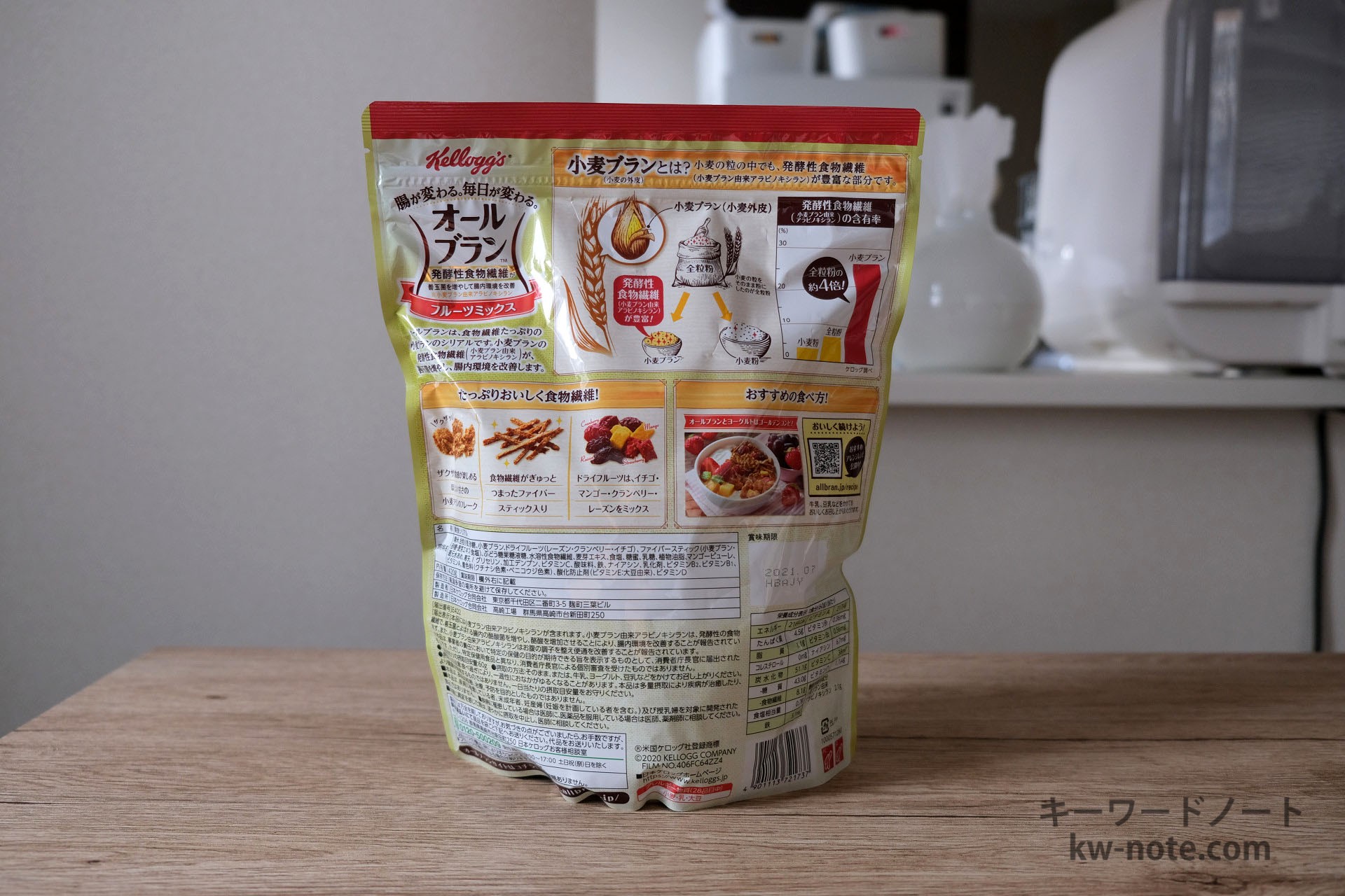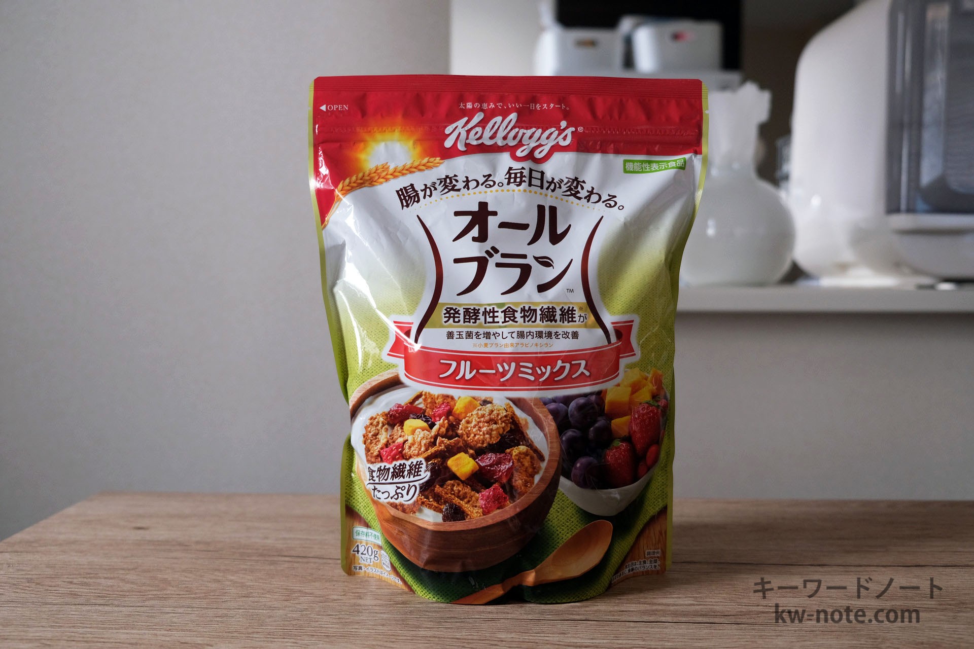 「オールブラン フルーツミックス」は同メーカーの有名シリーズ「オールブラン」の1つで、棒状のブランリッチを食べやすくフレーク状にし、ドライフルーツをミックスした商品。