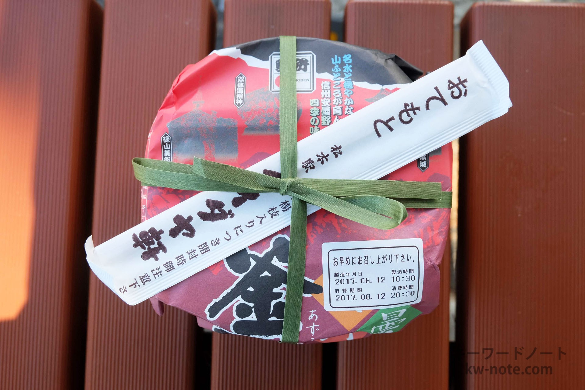購入したのは2017年8月、長野県の松本駅構内にある「駅弁あずさ」で、税込850円でした(2020年以降は900円に)。