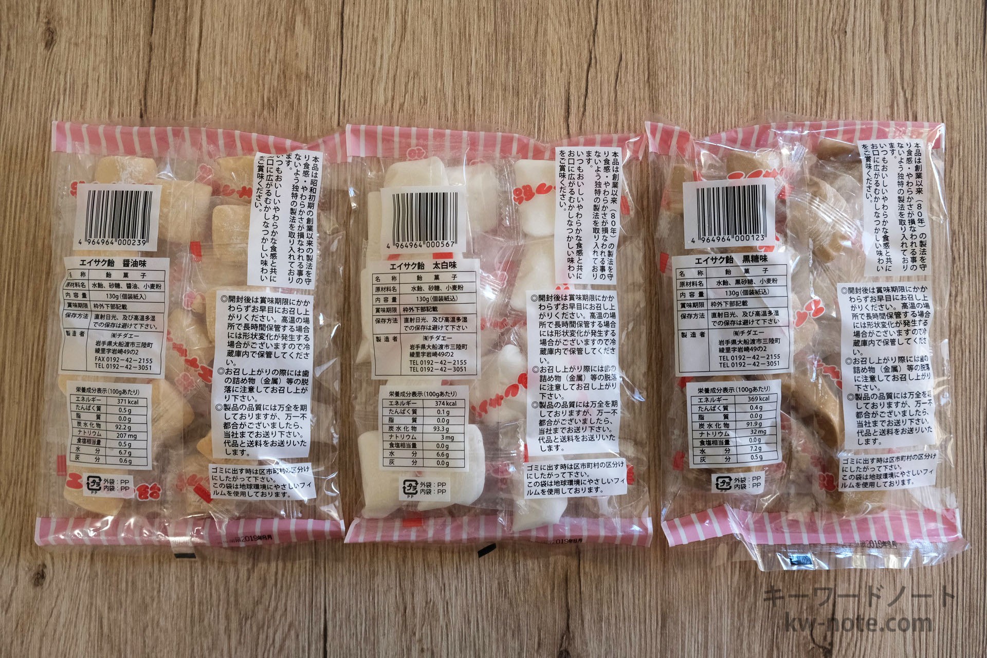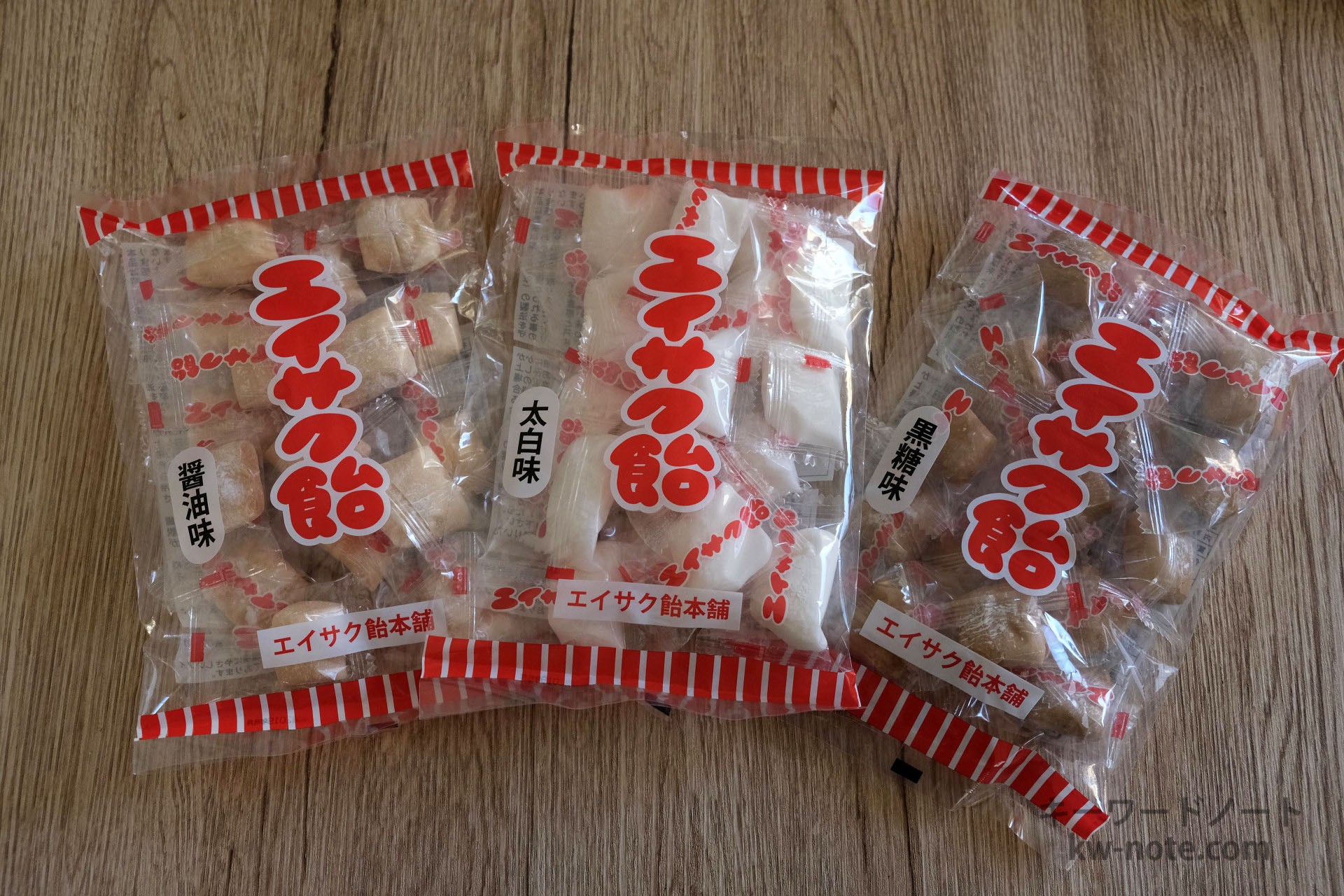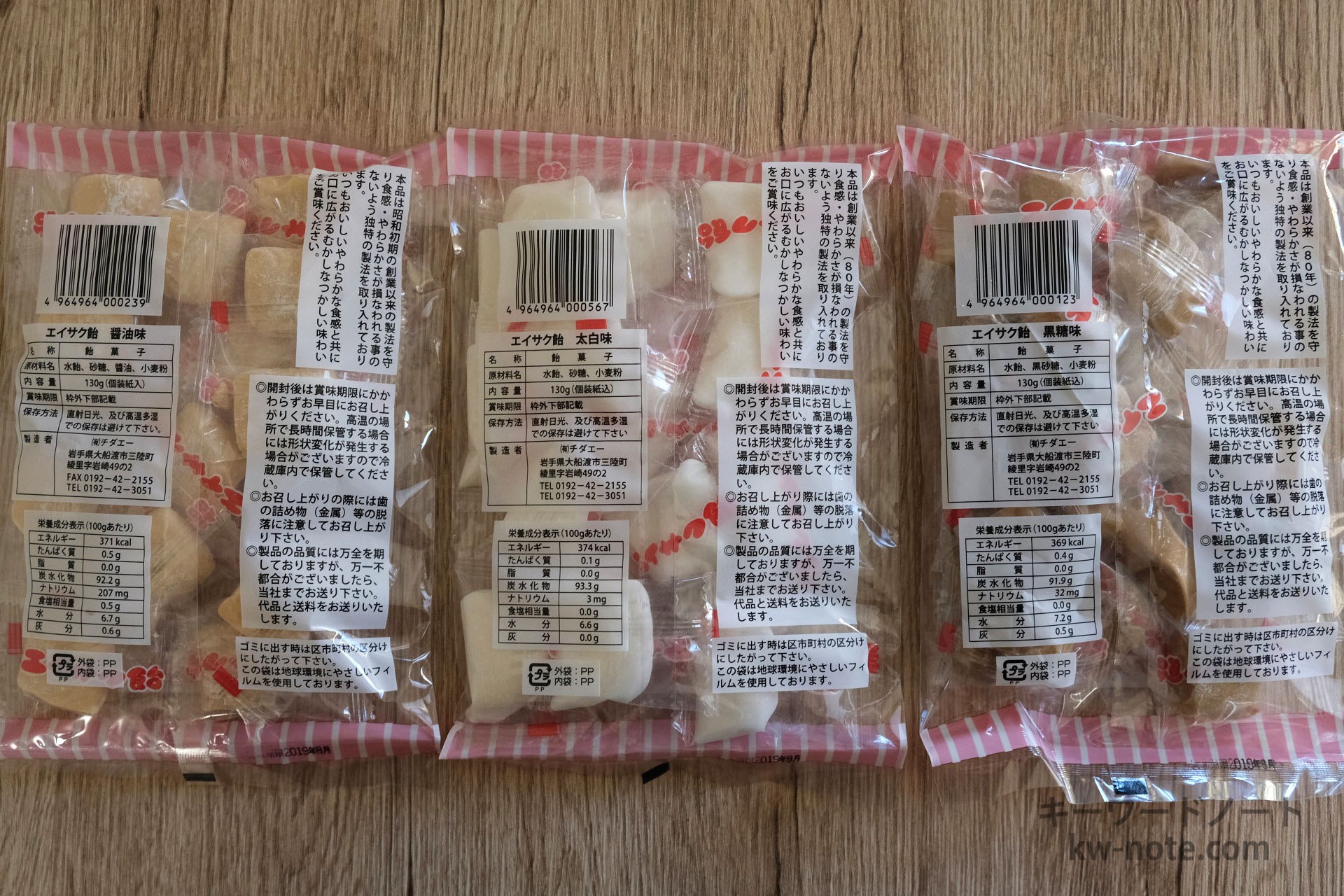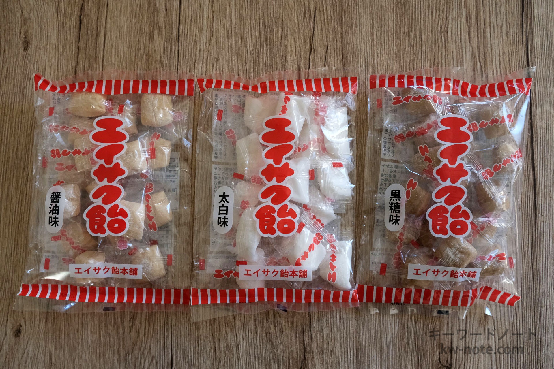| エイサク飴 醤油味の原材料名 | 水飴、砂糖、醤油、小麦粉 |