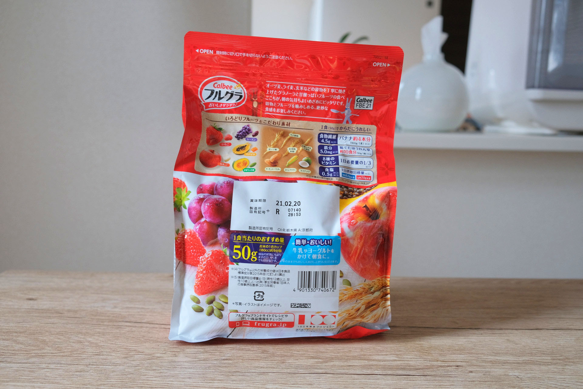 パッケージには「1食分 50g当たり」と書かれていますので、フルグラは1食50gが標準的な量といえます。