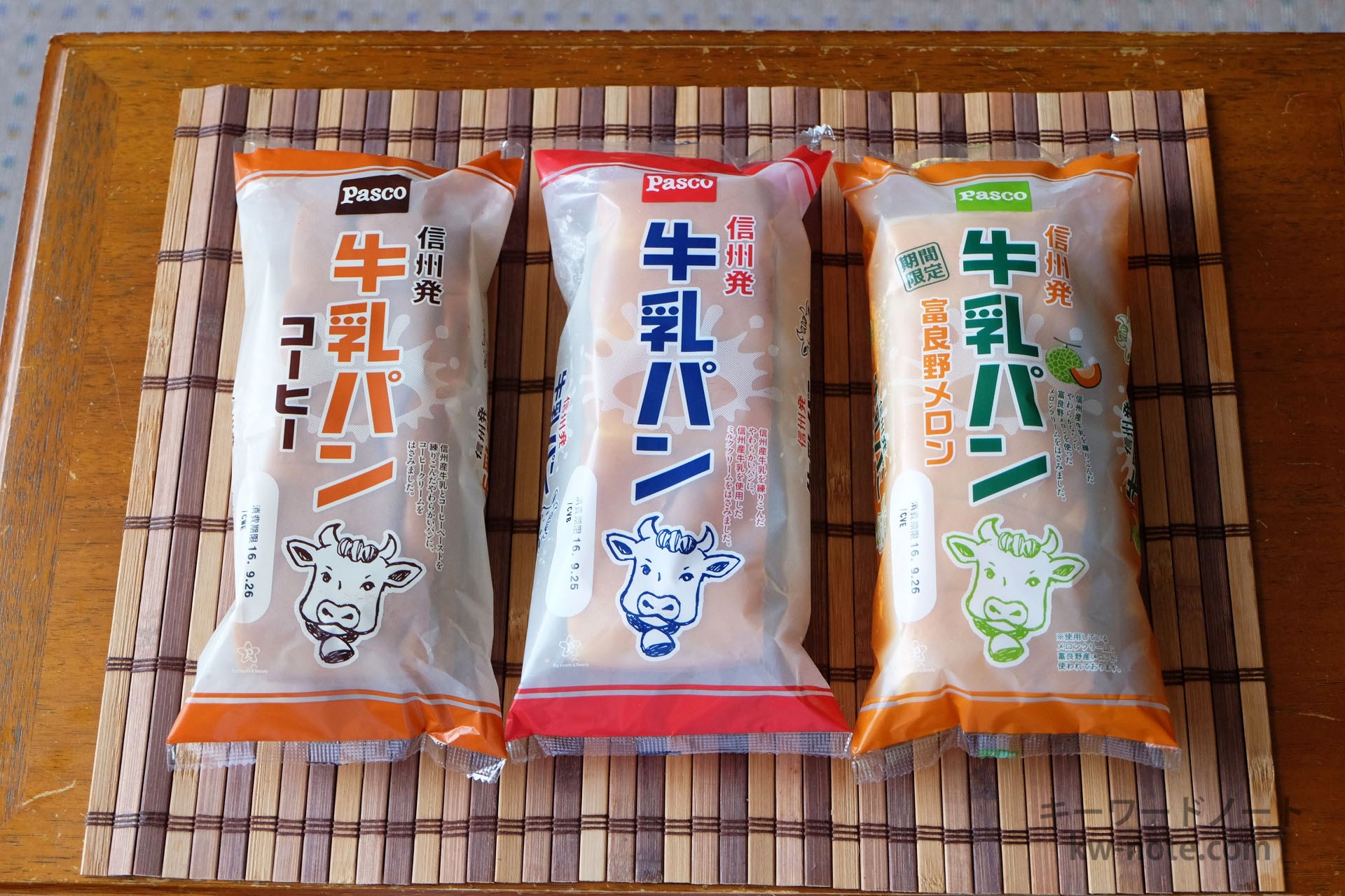 購入したのは2016年9月、長野県上田市のイトーヨーカドー アリオ上田店で、「牛乳パン」「コーヒー味」「富良野メロン味」3商品とも税抜98円でした。