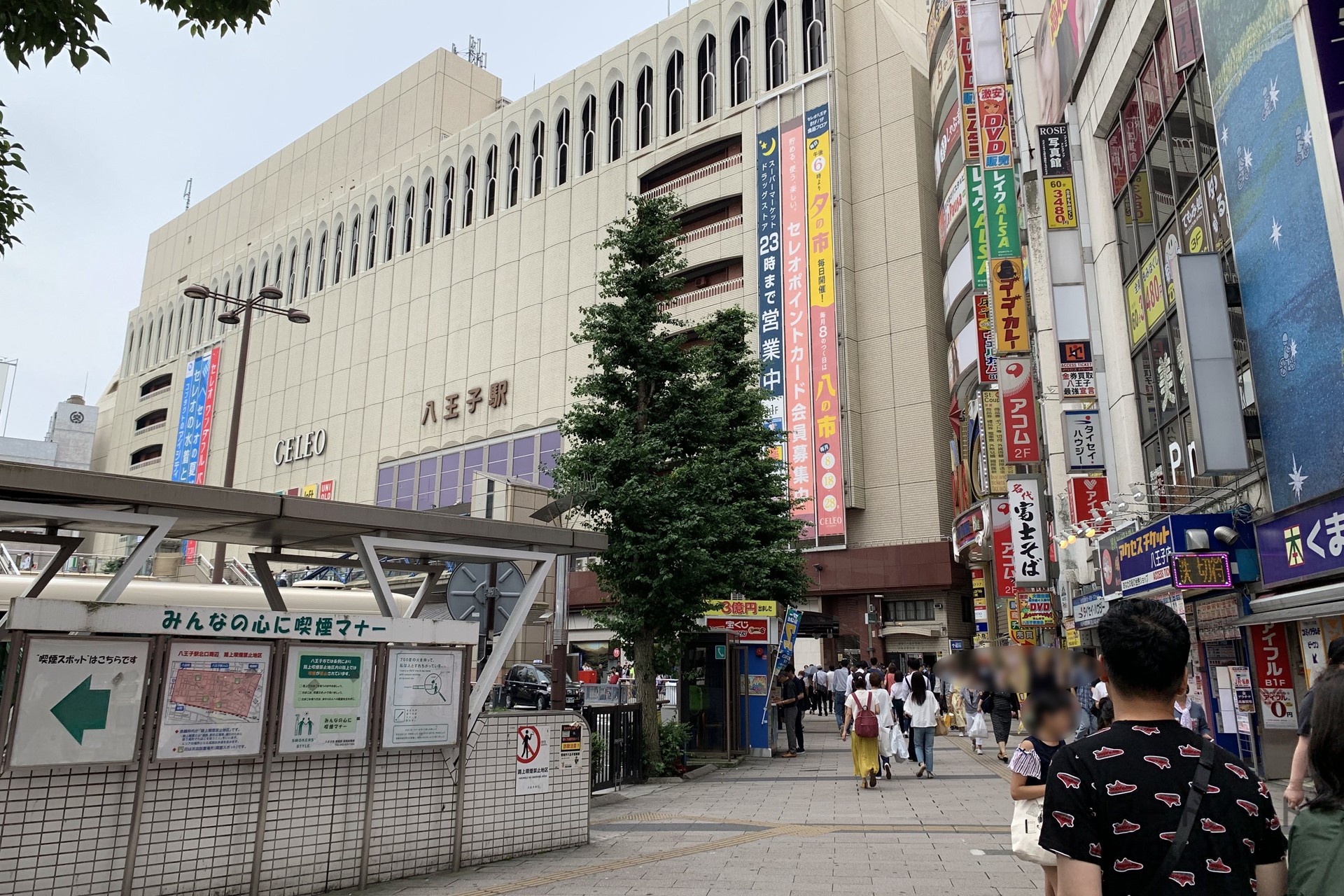 場所はJR八王子駅の北口から徒歩4~5分、西放射線ユーロードという歩行者天国&商店街の通りにあります。