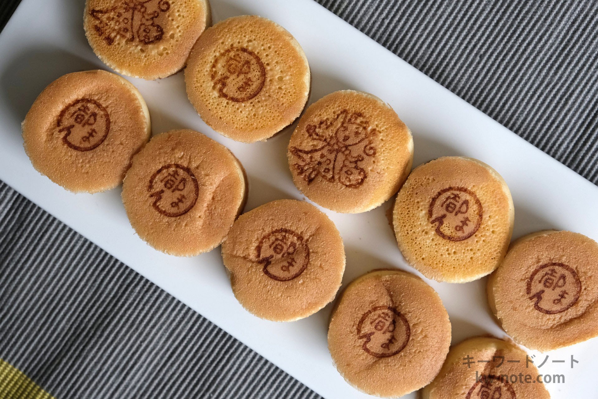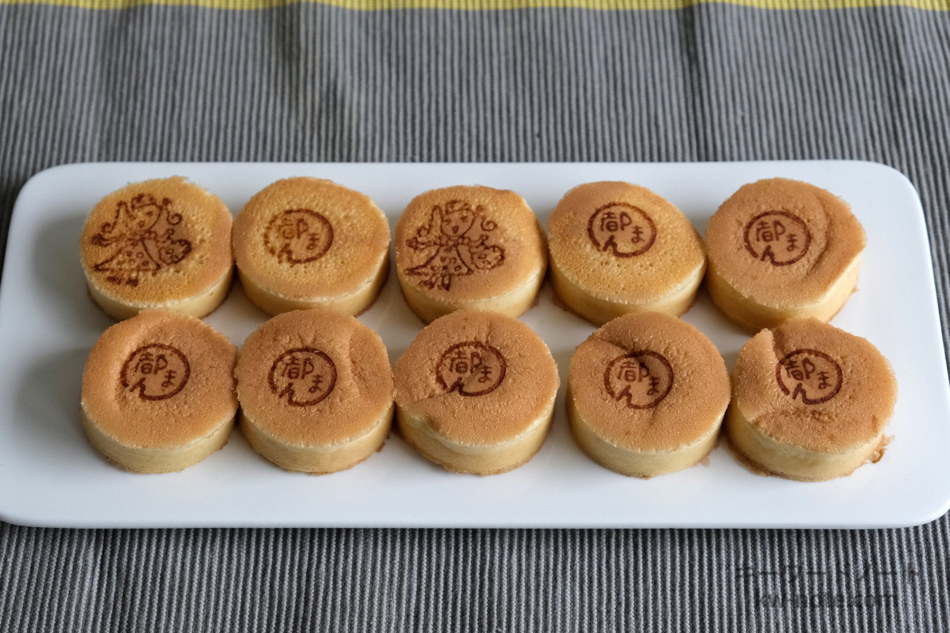 焼印の基本は「都まん」の焼印ですが、写真にあるような女の子の絵柄であったり、企業や自治体などとのコラボ焼印であったり、政治家の河野太郎さんのバージョンも存在します。