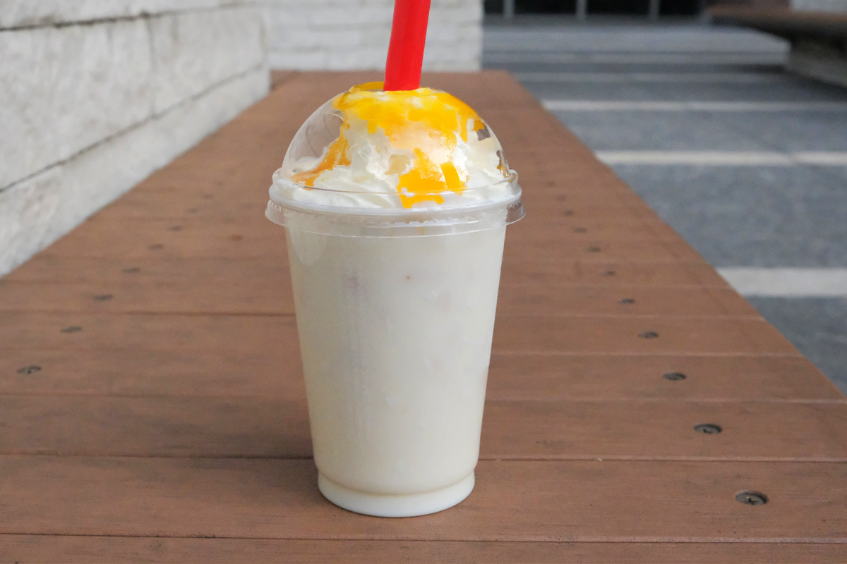食感はシェイクと似ていますが、氷から撹拌して作られるためシェイクの滑らかさとプラス氷のガリガリっとした感触もあります。