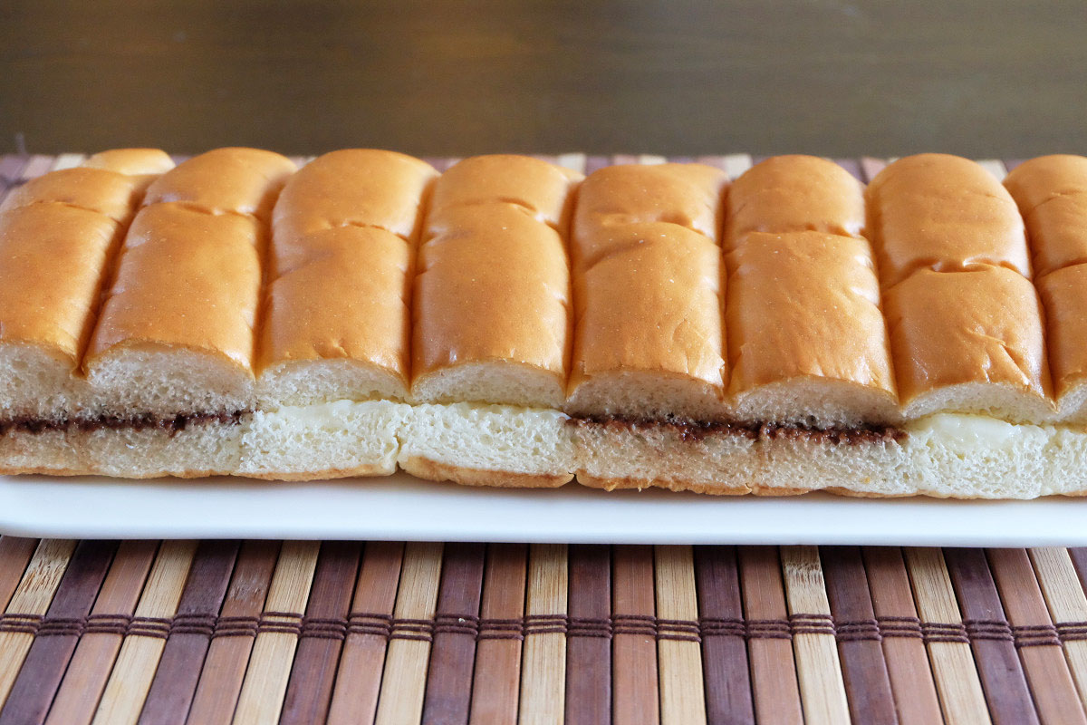 ミルククリームとチョコクリームが2切れづつ交互に塗られています。