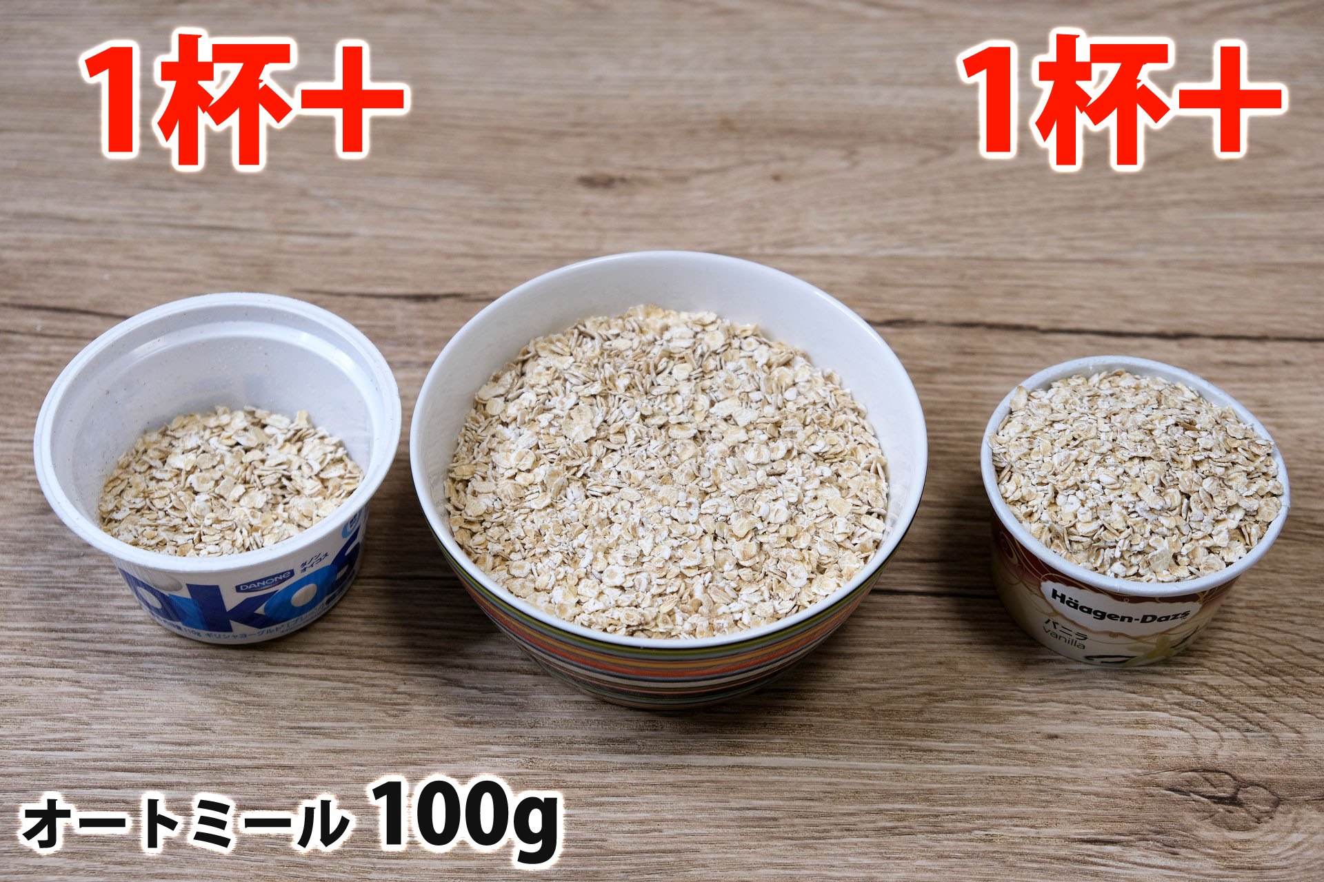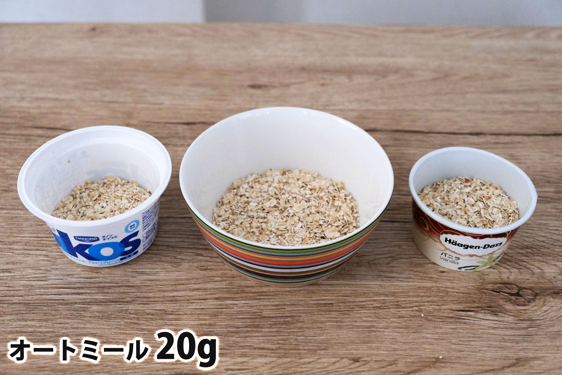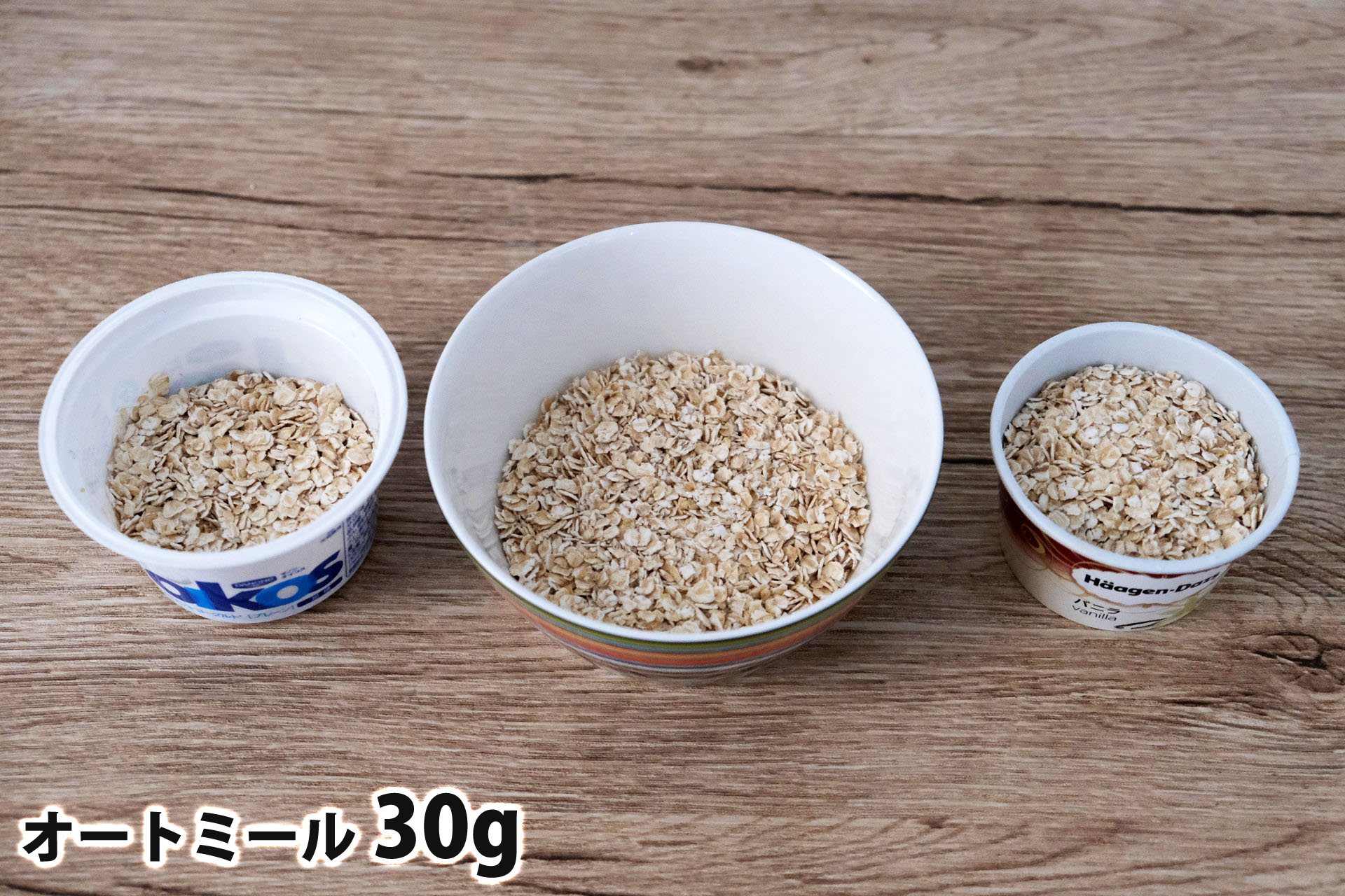オートミール1食分の量はどれ位の量なのかと、各グラムごとの分量の目安、牛乳・ヨーグルト・豆乳をかけた時の栄養成分とともにまとめました。