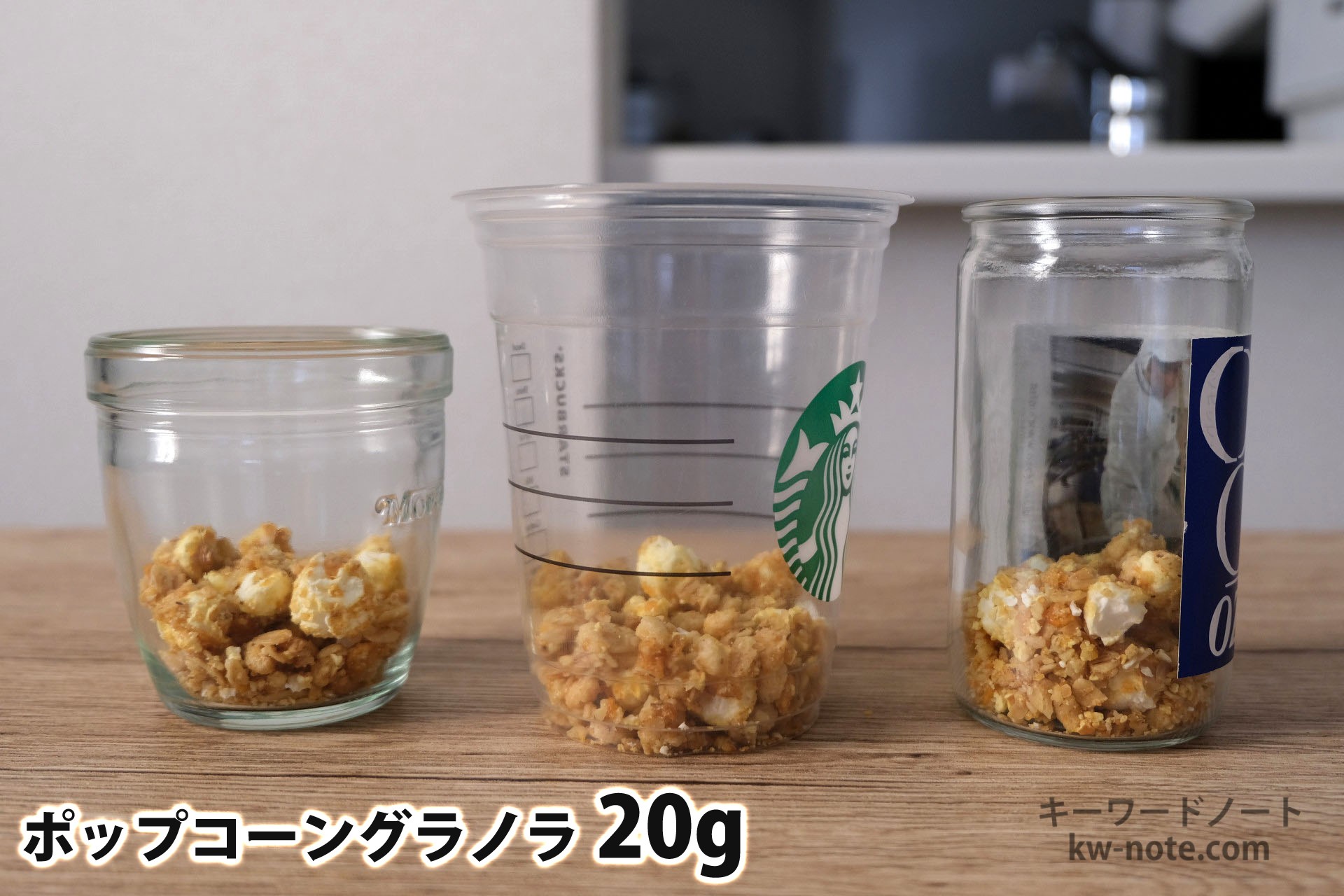 ポップコーングラノラ以外の他のシリアルの量については以下のリンクからご覧いただけます。