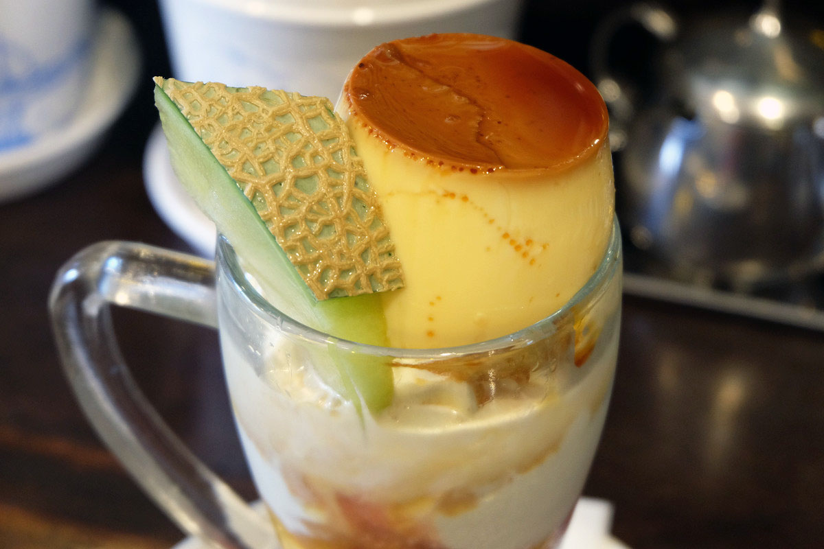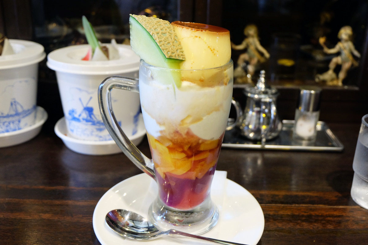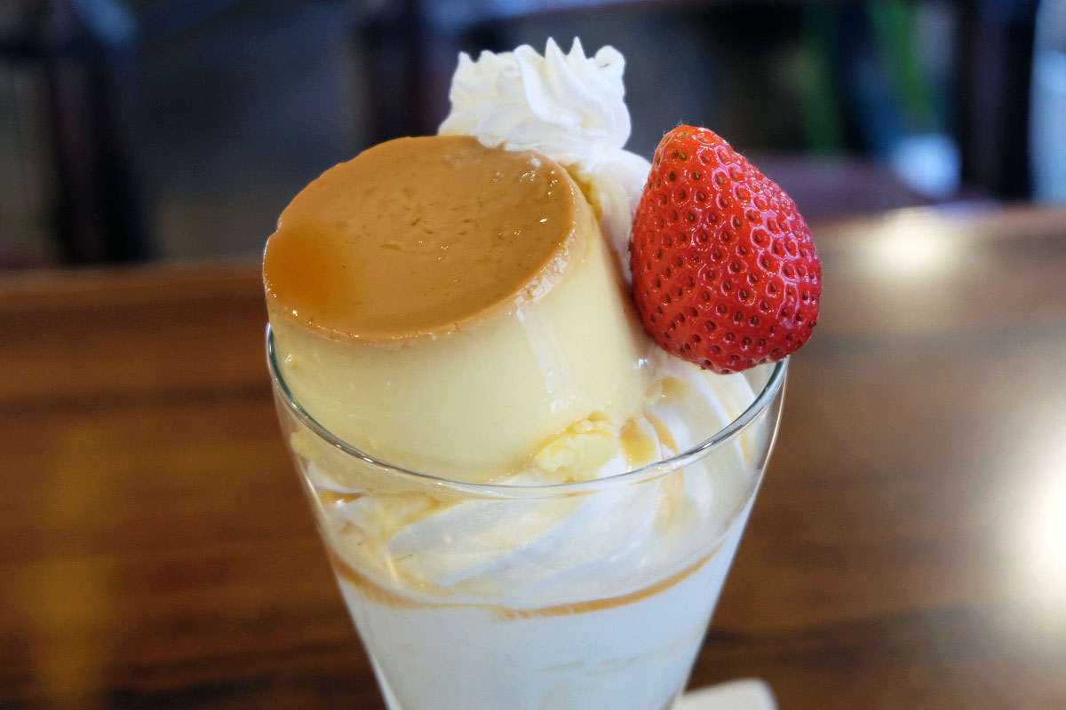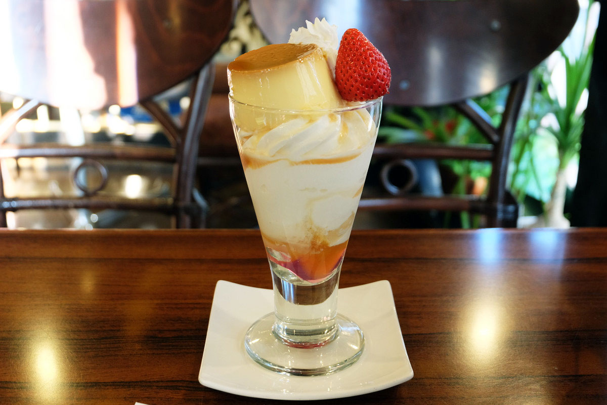 季節によって使用するフルーツは変化しますが、基本的には自家製プリンに生クリームとフルーツ、その下には同じく自家製のソフトクリームと各種フルーツやゼリーなどが入っています。