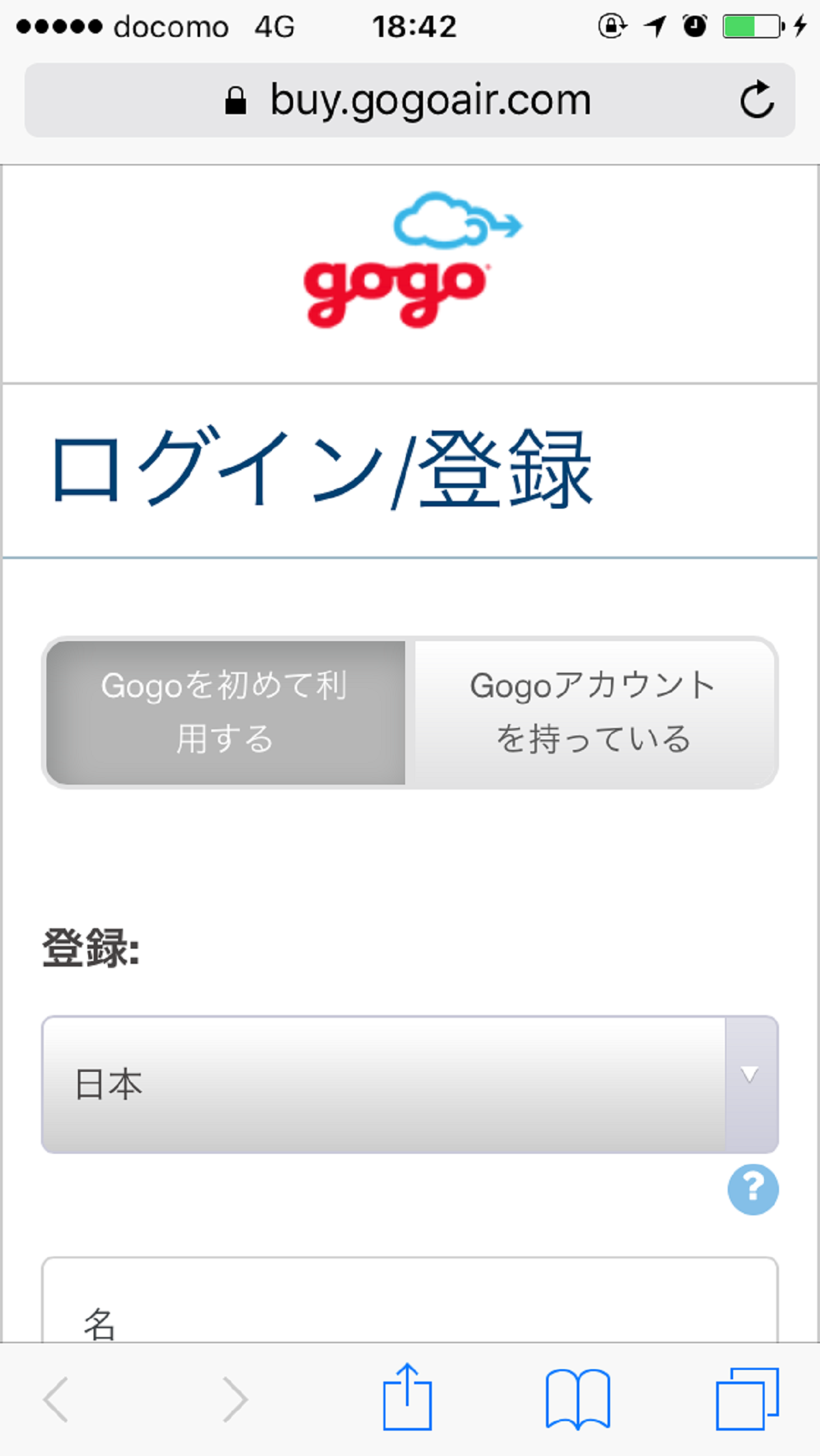 まずは飛行機に乗る前に機内Wi-FiのプロバイダであるGogoのアカウントを、こちら「Gogoアカウント作成 / ログインページ」で作成しておく必要があります。