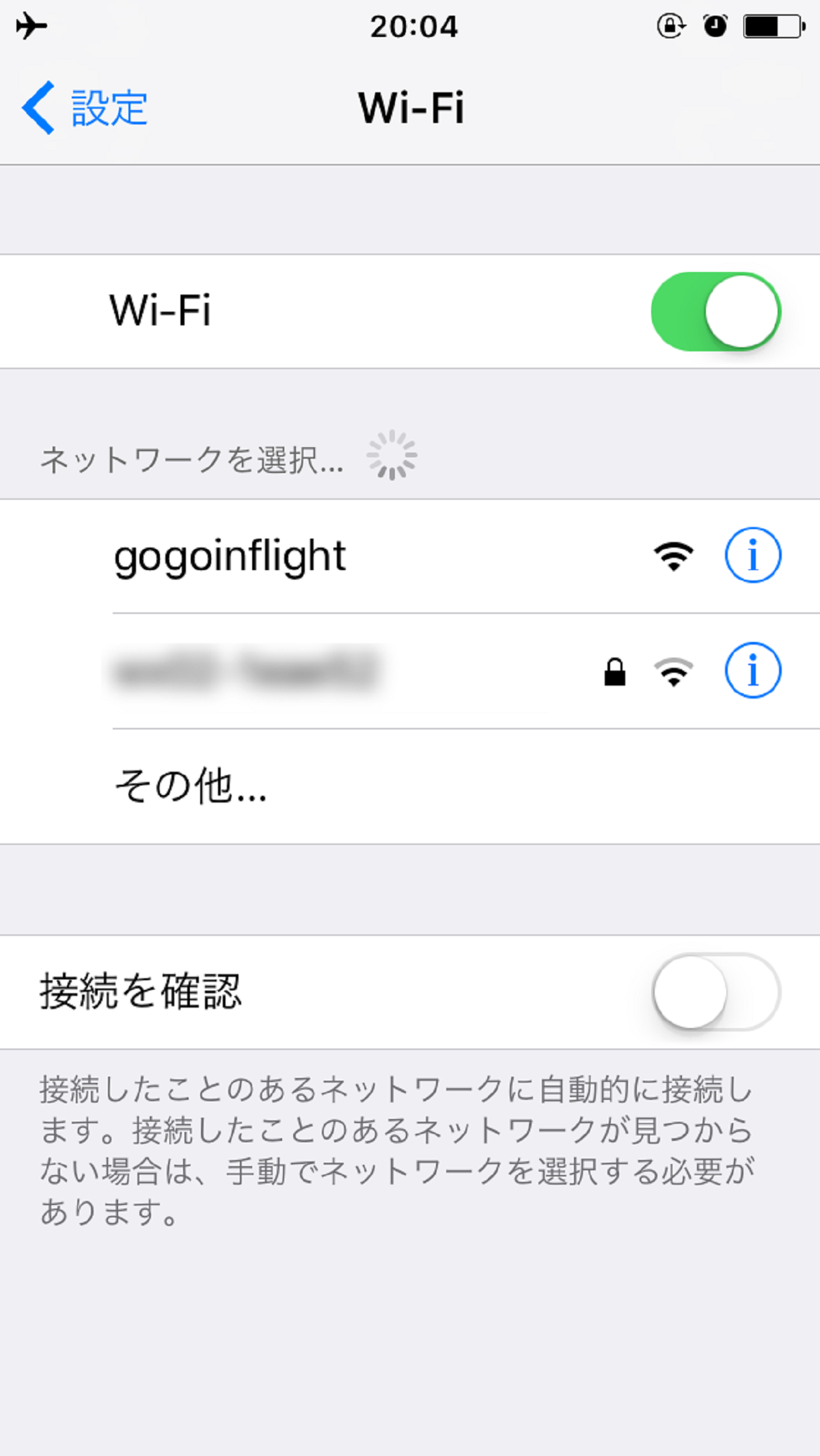 Wi-Fiのリストに「gogoinflight」が表示されますのでタップ。