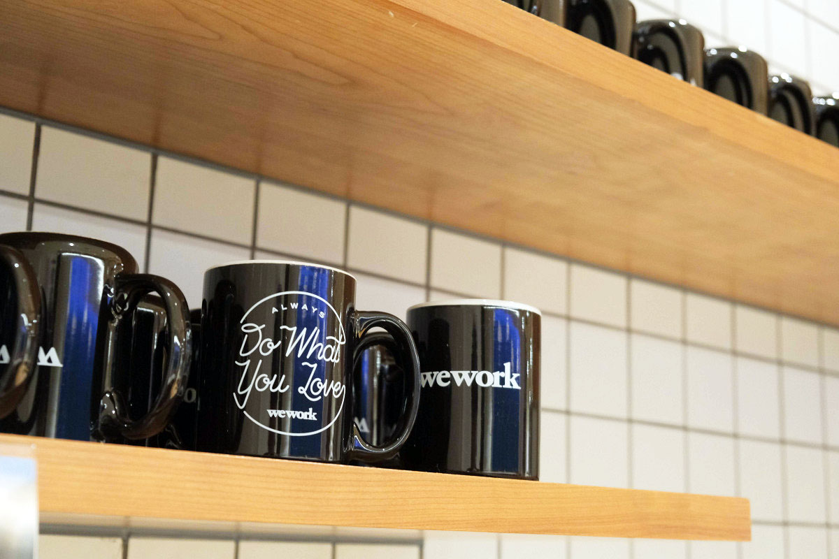 黒いマグカップにはWeWorkが掲げる「Do What You Love」(好きなことをしよう)と書かれていています。
