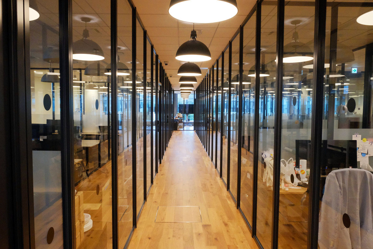 室内やフロアは自然光を取り入れるためガラスが多用されていて洗練された雰囲気。