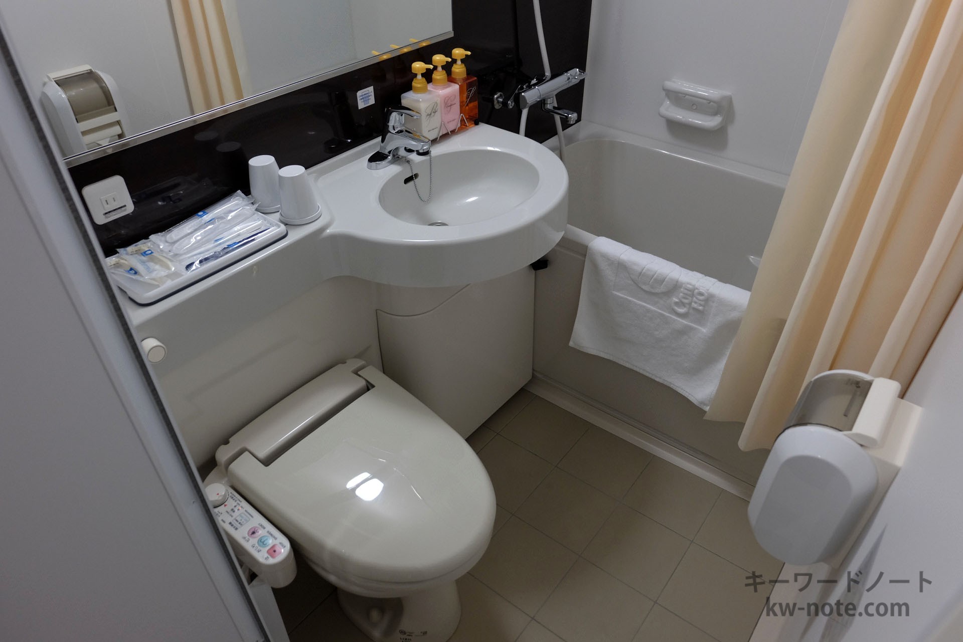 ホテルでいうとビジネスホテルの標準くらいの広さで、広くはありませんが1人用の部屋としては窮屈さは感じないと思います。