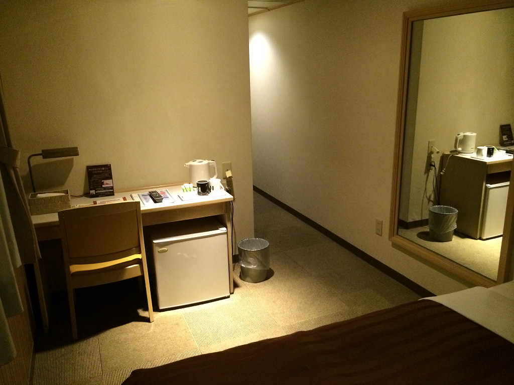狭いですがビジネス用途で1人の宿泊であれば問題ないかと思います。