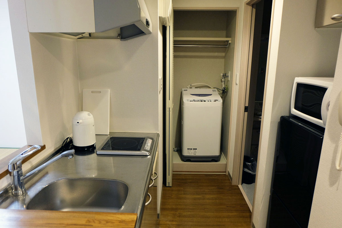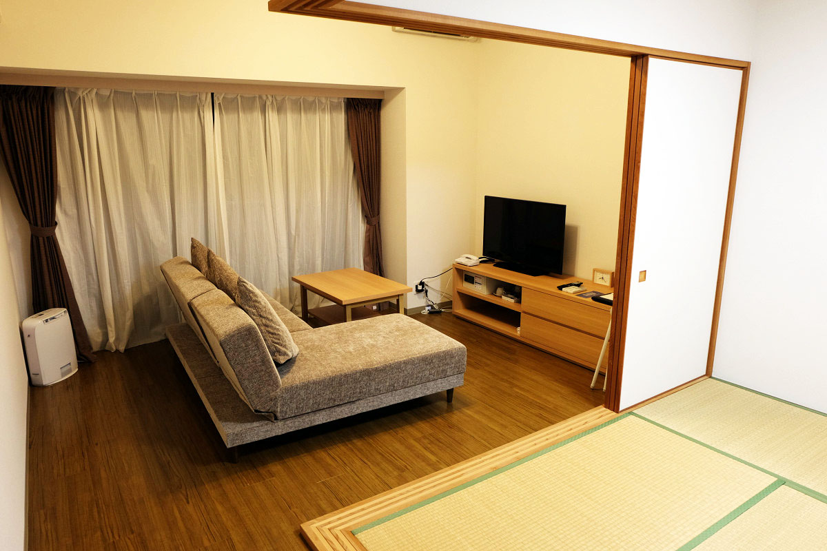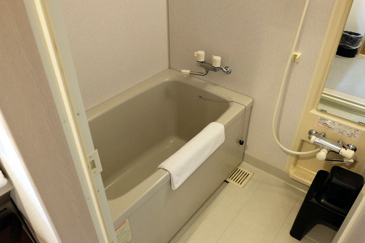 ホテルでいうとビジネスホテルのかなり広い部屋にあたり、2名でも利用でも余裕があり、3名でも窮屈さは感じず利用できる広さです。