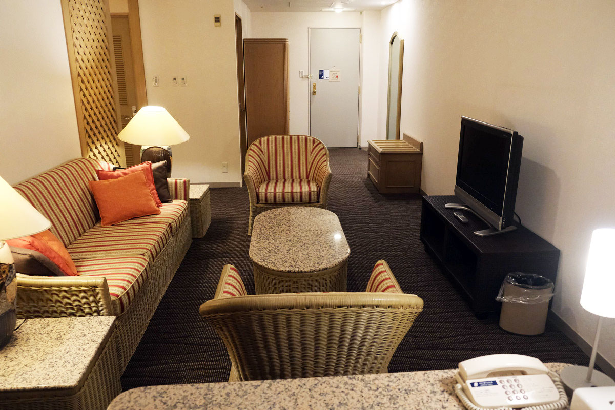 ホテルでいうとリゾートホテルで2~4人向けの部屋で、4人でもゆとりをもって利用する事で、5人でも問題ない広さです。
