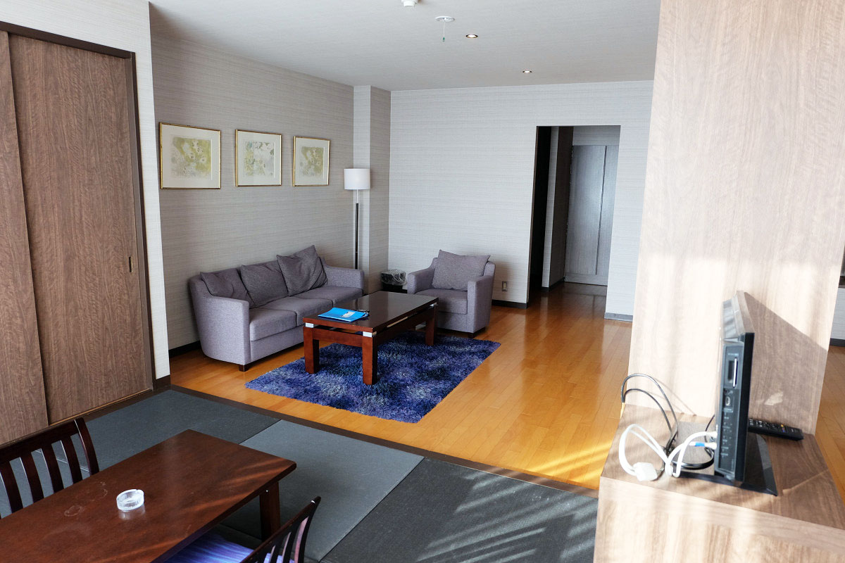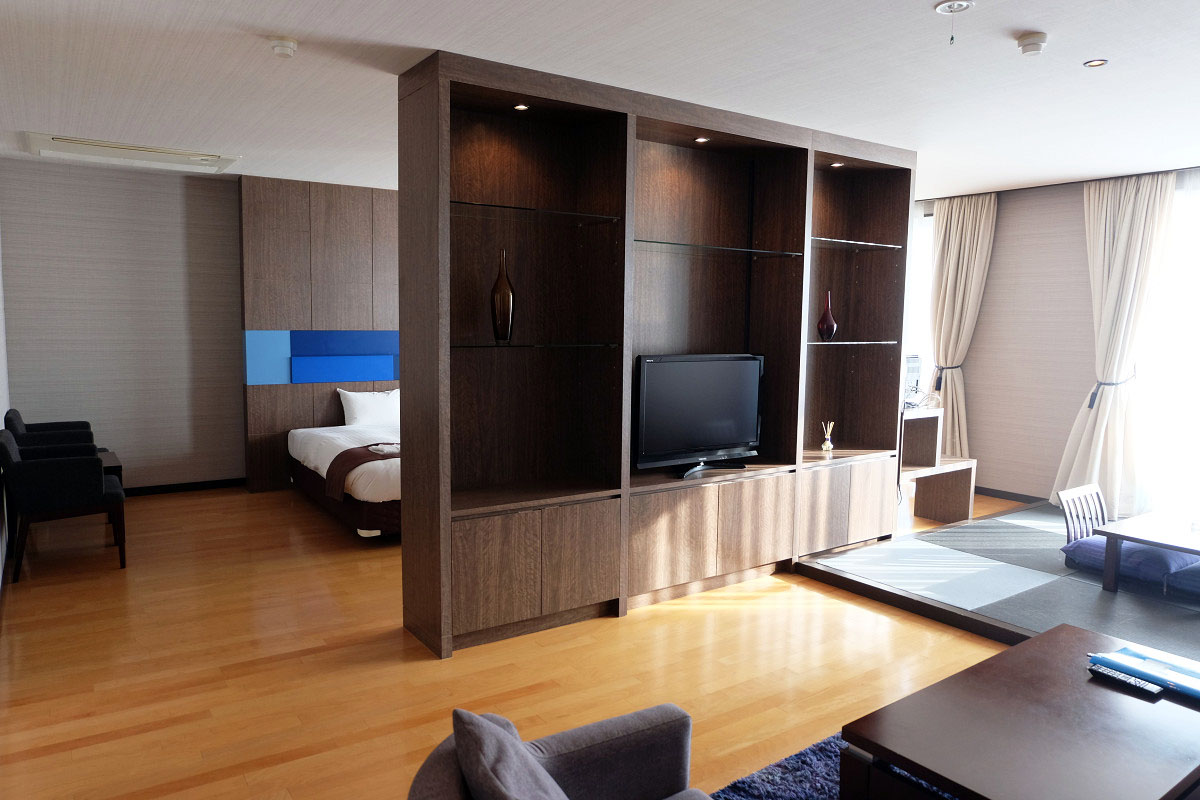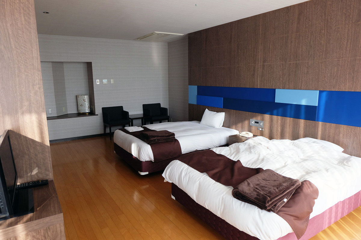 ホテルでいうとリゾートホテルで2~4人向けの部屋で、4人だとかなりゆとりのある利用が出来、5人でもある程度ゆとりのある広さです。