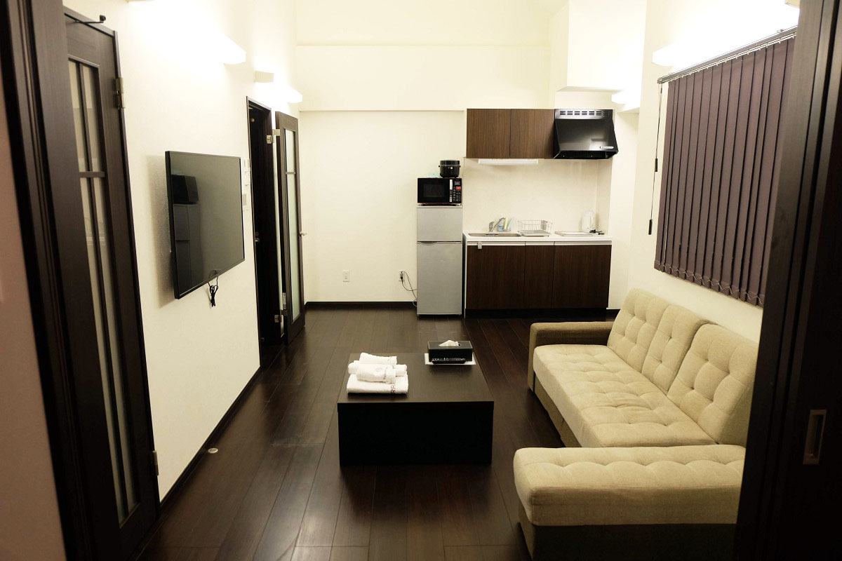沖縄県の那覇市にあるコンドミニアムタイプの宿泊施設で、間取りは2LDKでした。