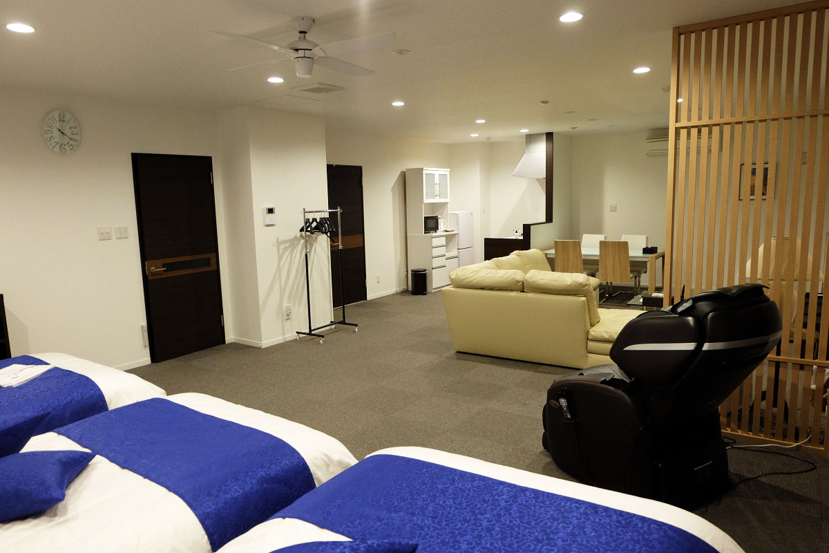 ホテルでいうとリゾートホテルで2~5人向けの部屋で、5人でもある程度ゆとりを持って利用できる広さです。