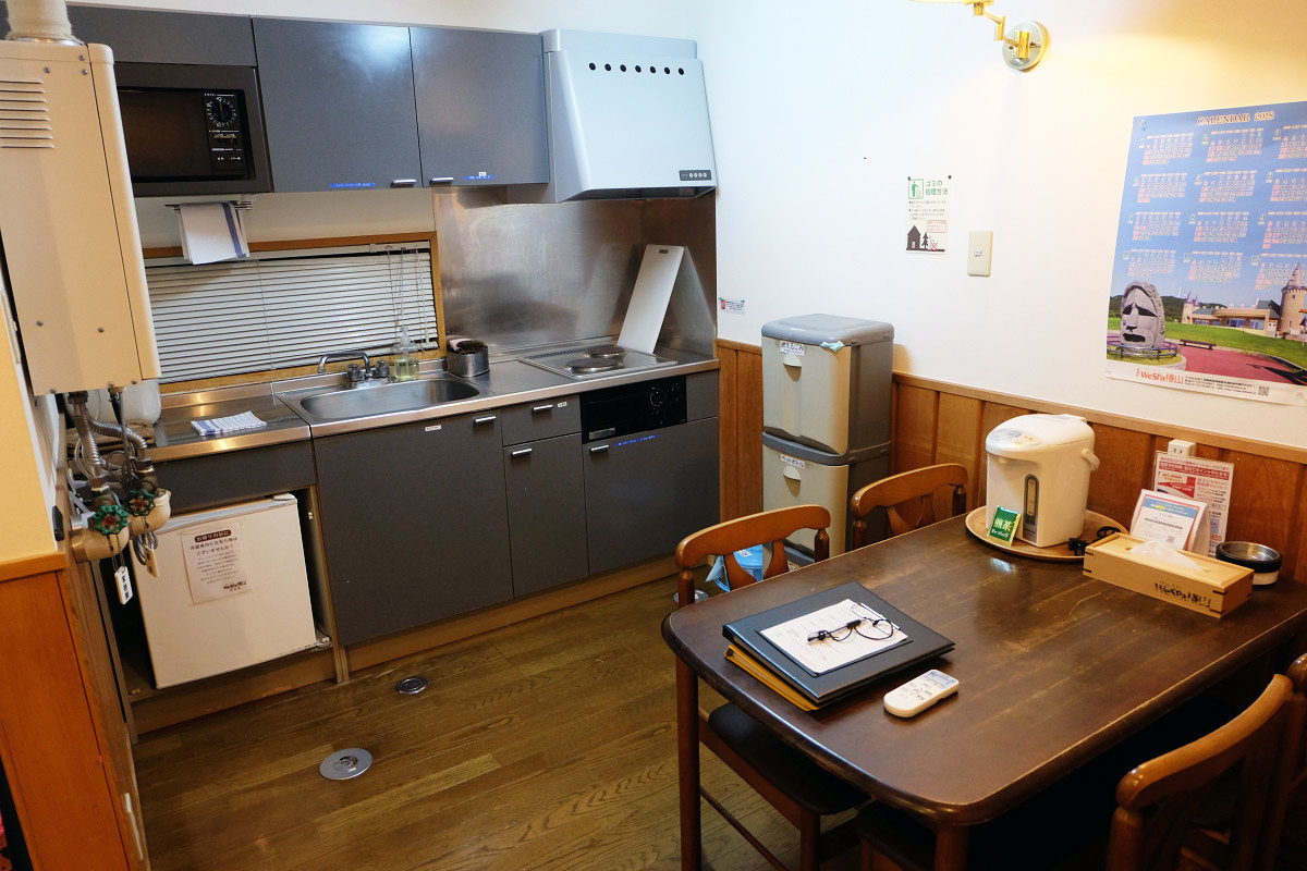 「花」という2階建てのコテージで、1階はキッチンとダイニングにトイレとバスルームそしてベッドルーム、2階はベッドルームのみの間取りでした。