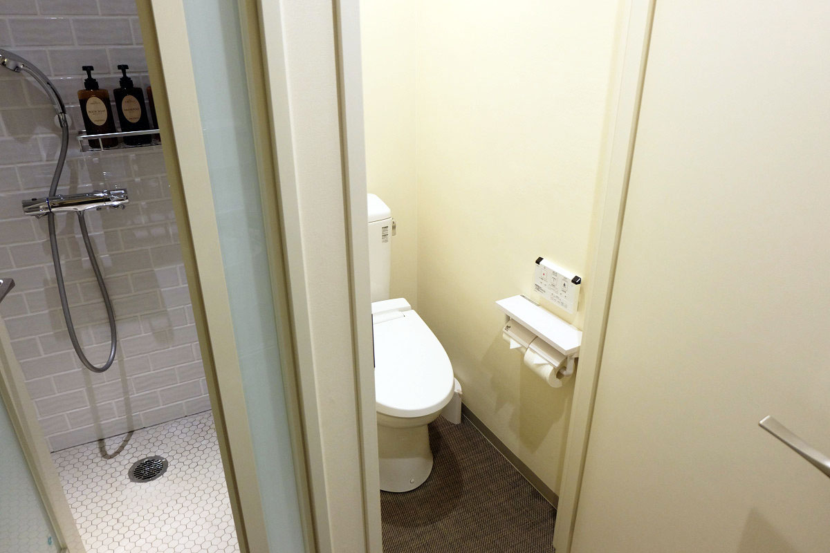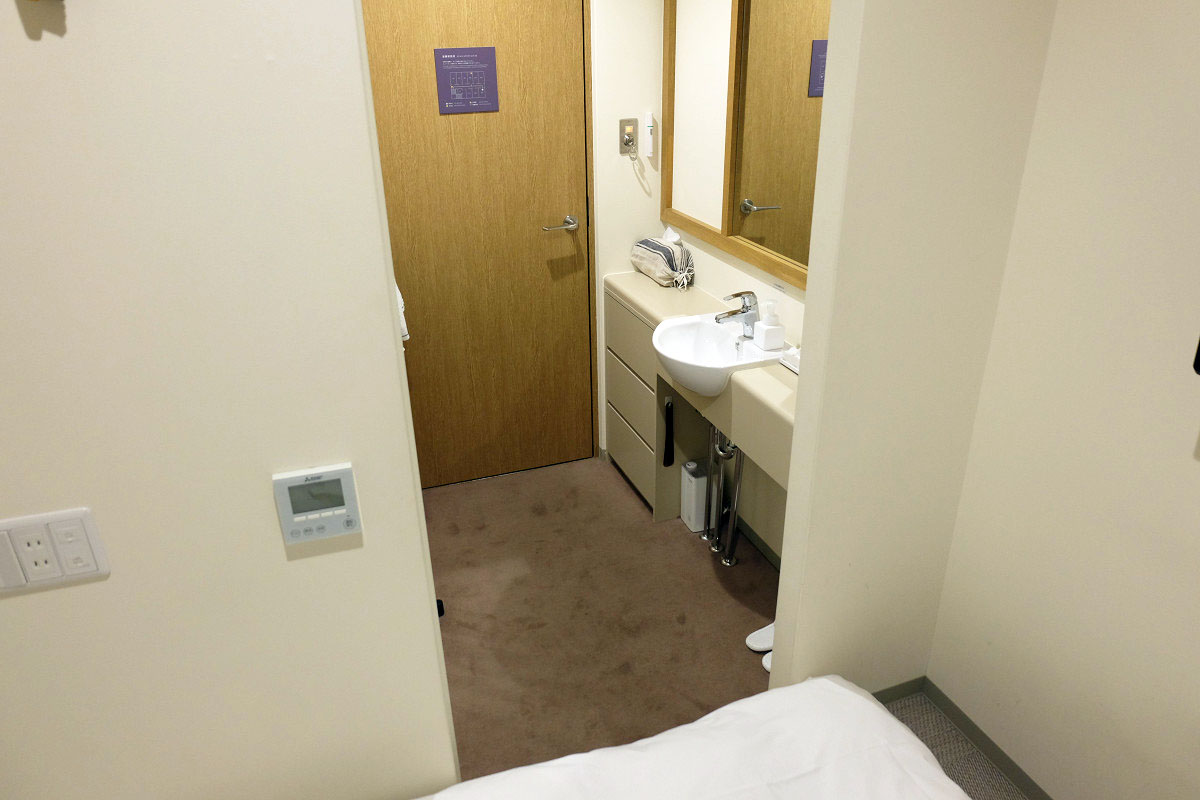 8平米ということでご覧の通り狭いですがベッド幅は130cmあり、浴槽はありませんがシャワールームとトイレは別になっています。