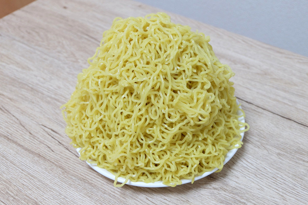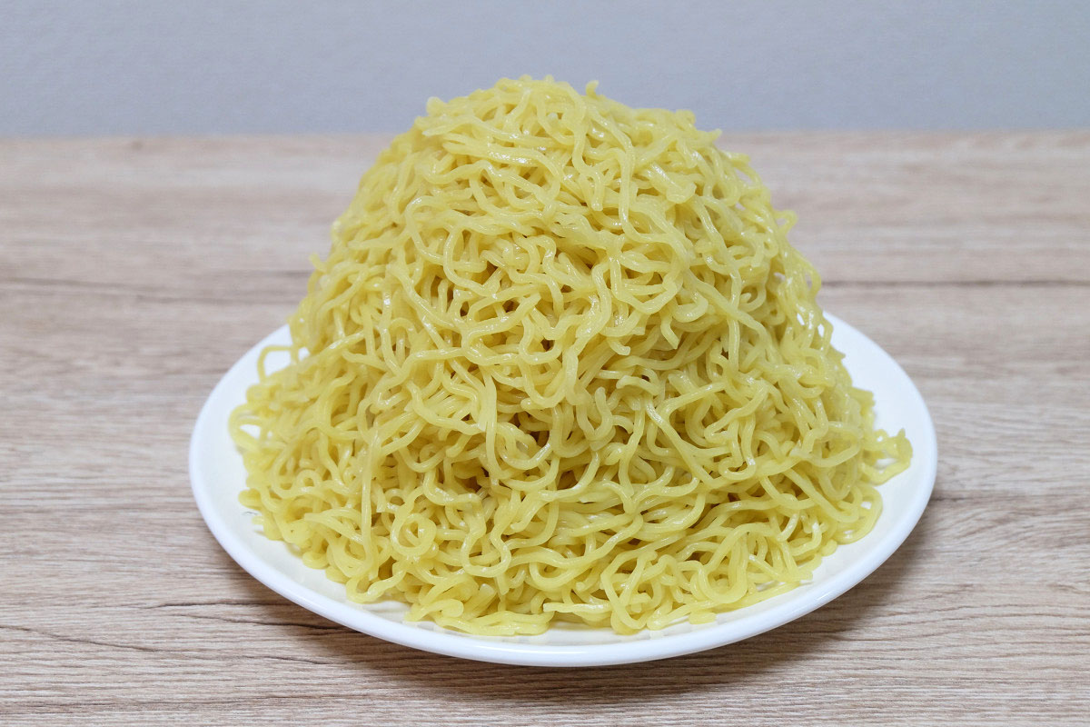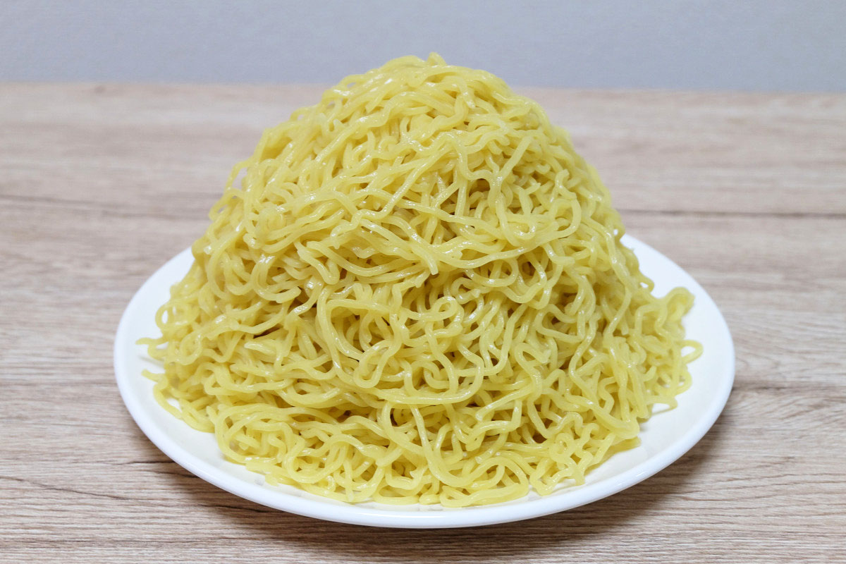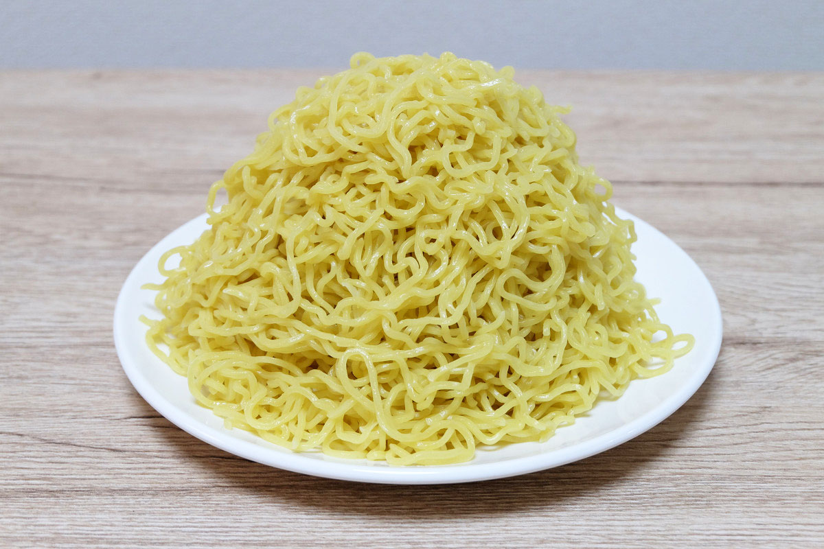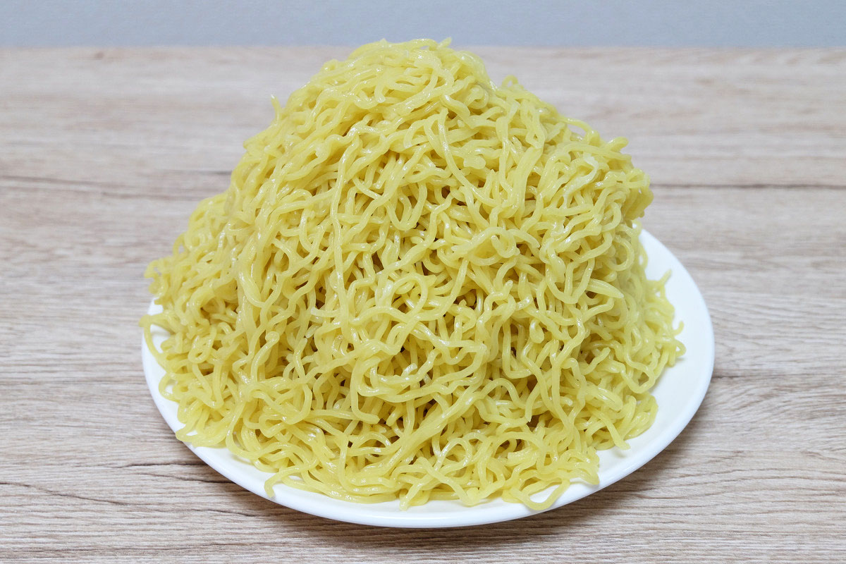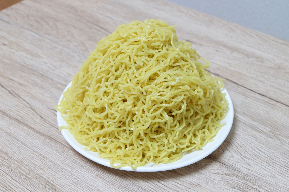 時々ラーメン屋さんで、ゆでる前の麺をグラムで表記してるお店がありますが、茹でた後だとどれくらいの重さになっているのかや、嵩(かさ、体積)がどんなものなのかがよくわかりませんよね。