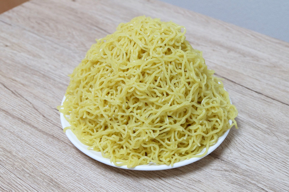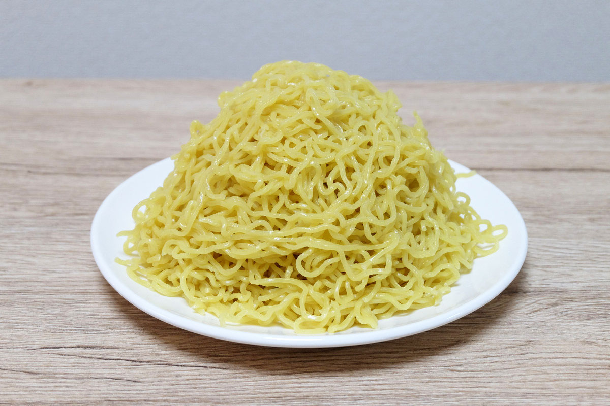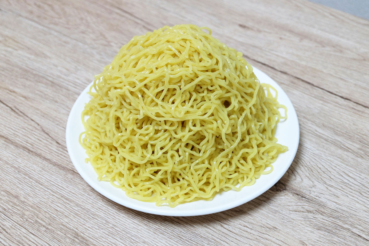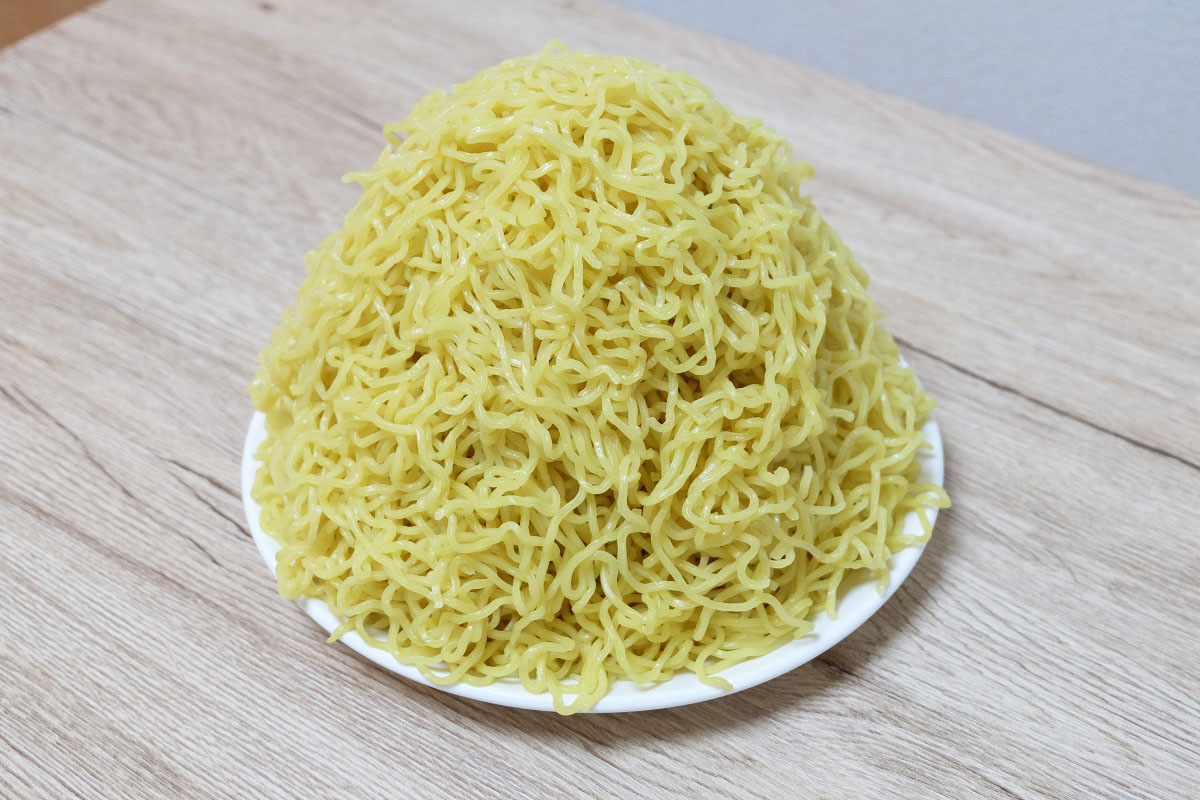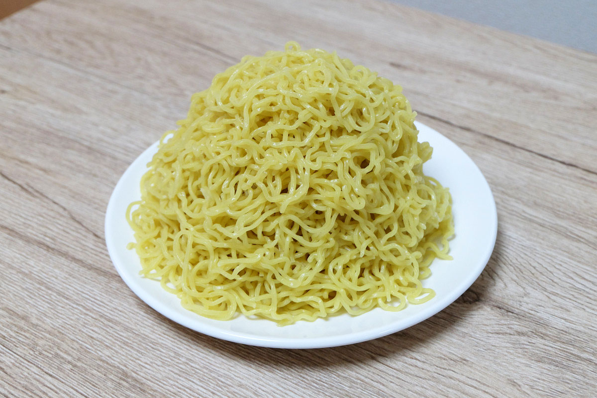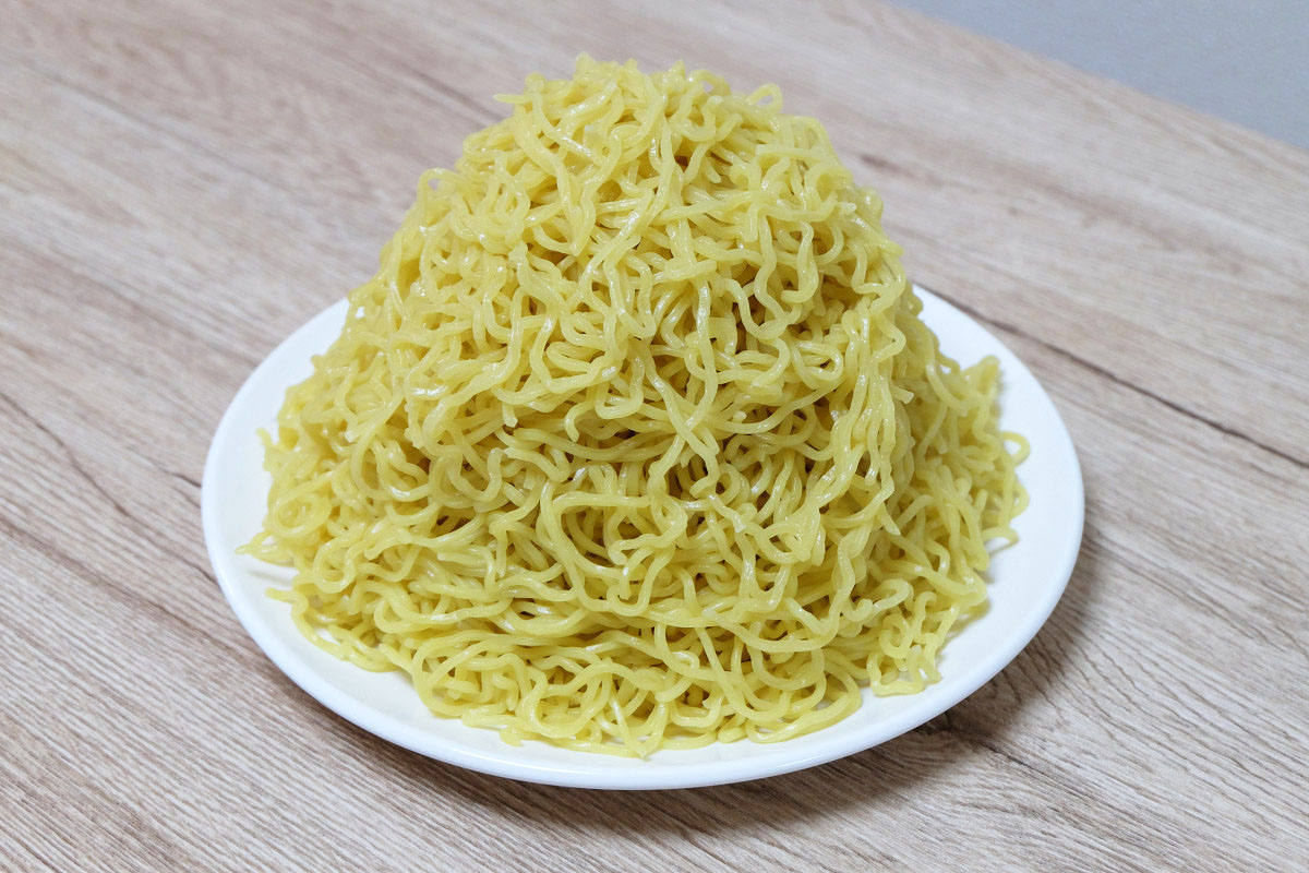 時々ラーメン屋さんで、ゆでる前の麺をグラムで表記してるお店がありますが、茹でた後だとどれくらいの重さになっているのかや、嵩(かさ、体積)がどんなものなのかがよくわかりませんよね。