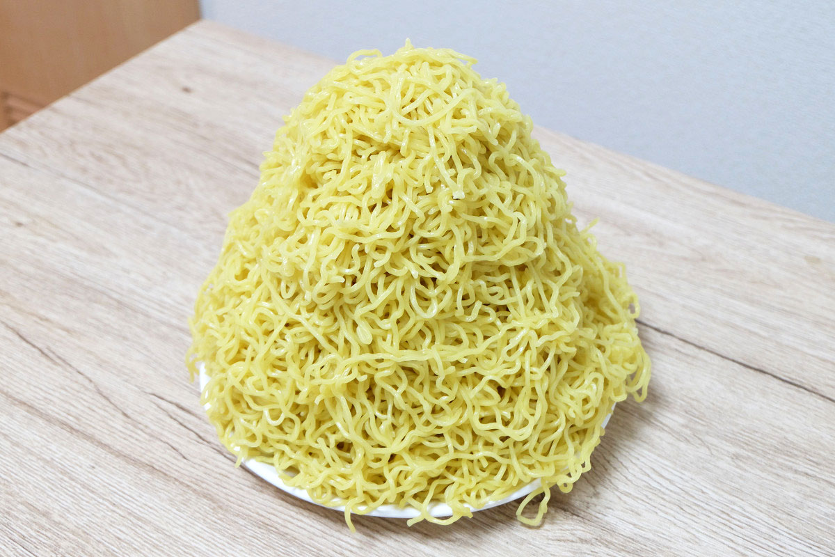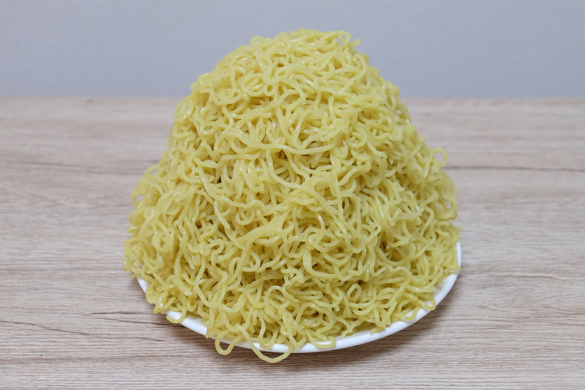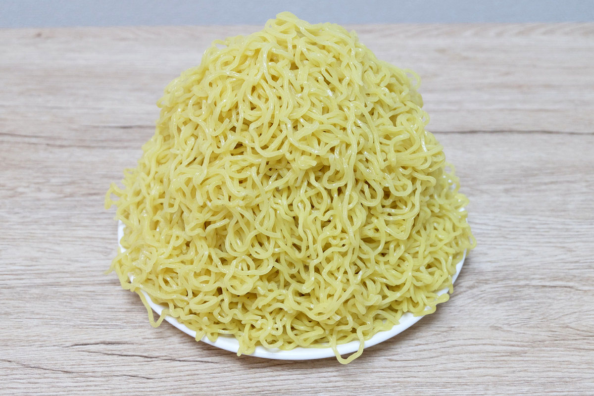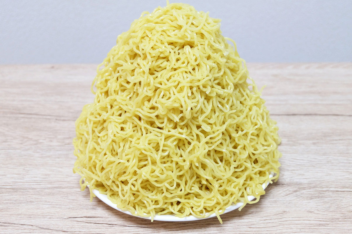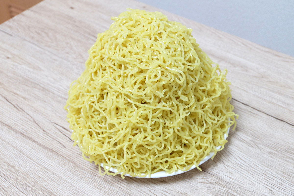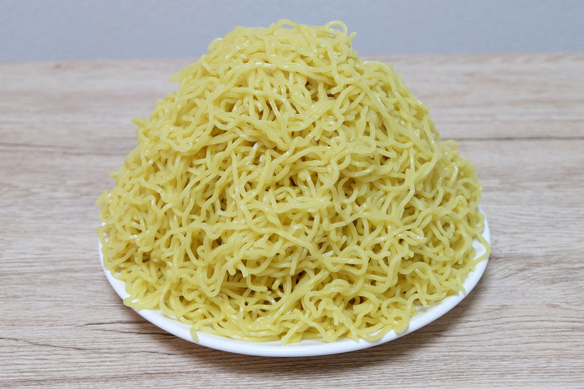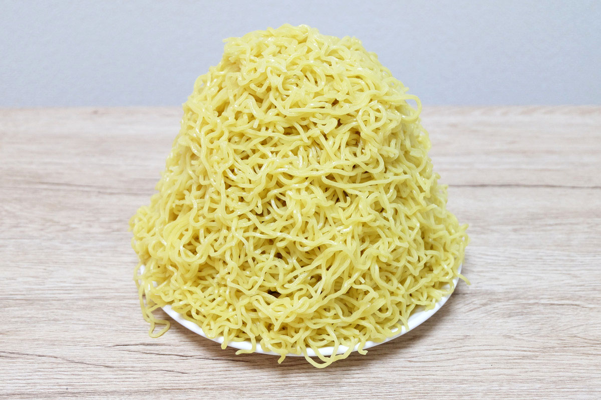 時々ラーメン屋さんで、ゆでる前の麺をグラムで表記してるお店がありますが、茹でた後だとどれくらいの重さになっているのかや、嵩(かさ、体積)がどんなものなのかがよくわかりませんよね。