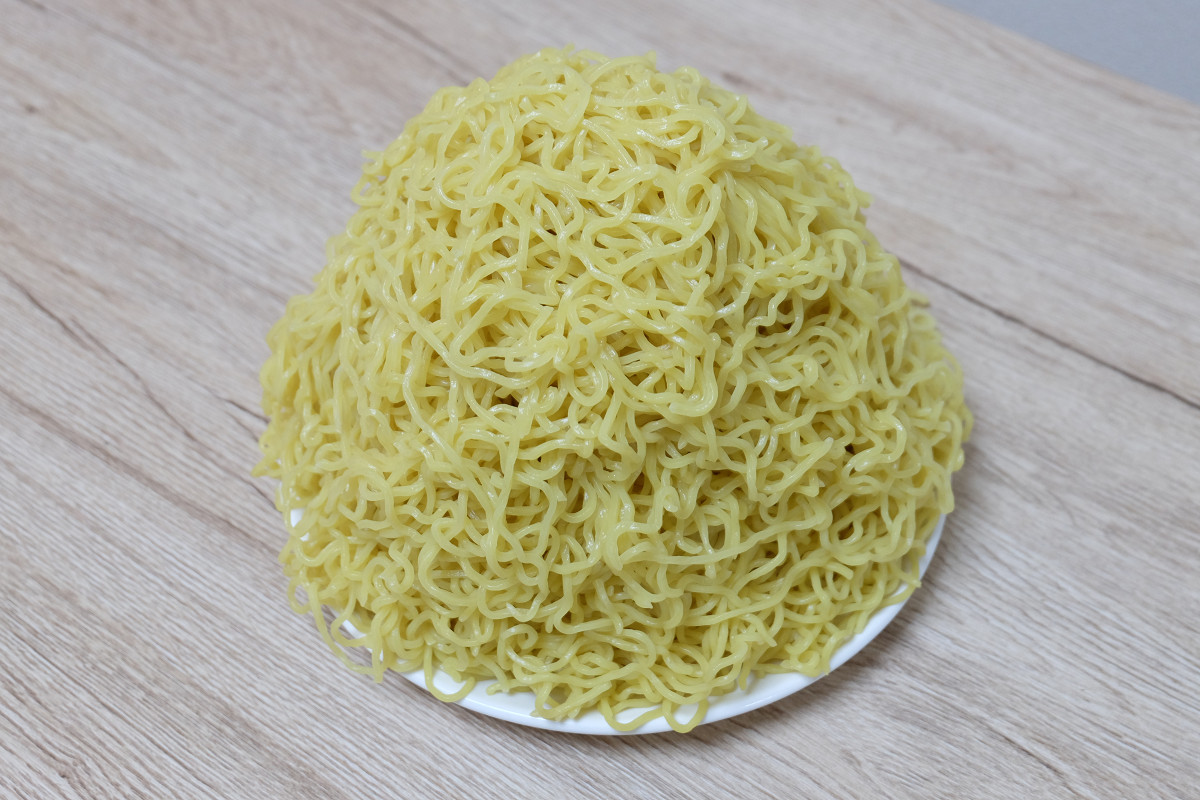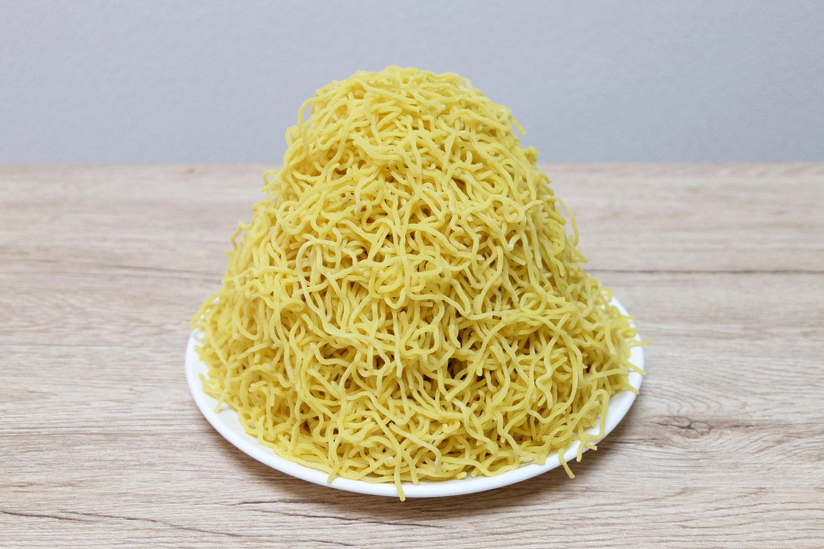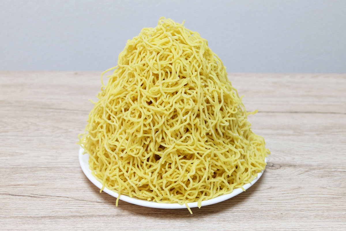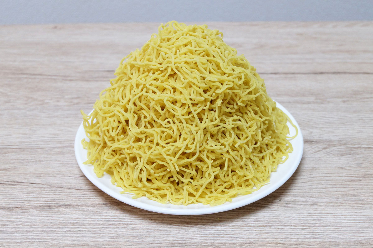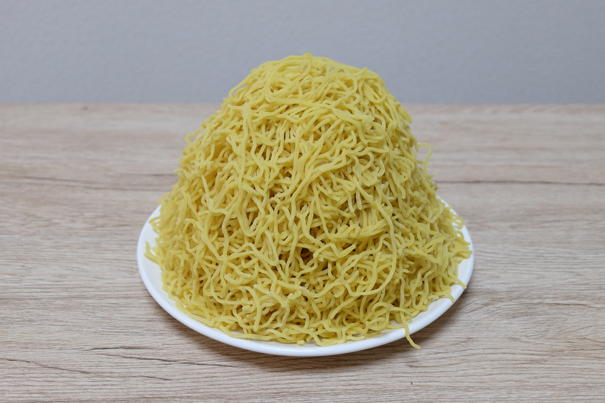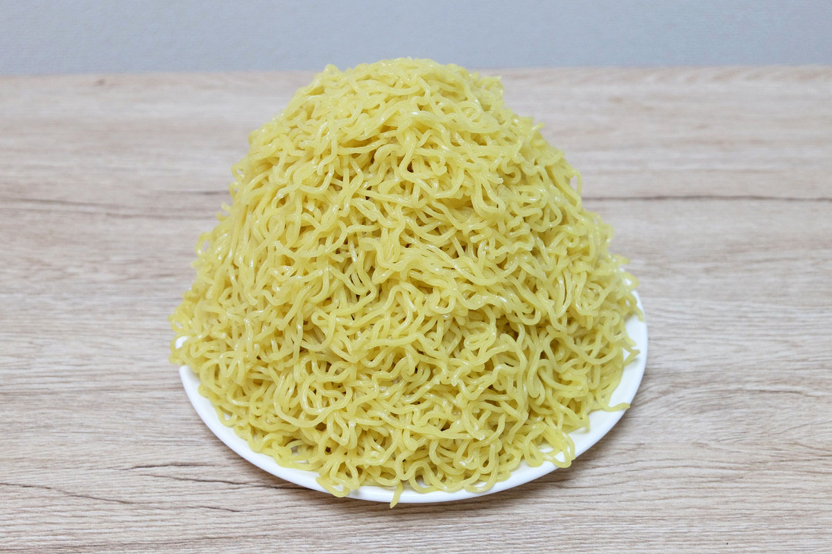 時々ラーメン屋さんで、ゆでる前の麺をグラムで表記してるお店がありますが、茹でた後だとどれくらいの重さになっているのかや、嵩(かさ、体積)がどんなものなのかがよくわかりませんよね。