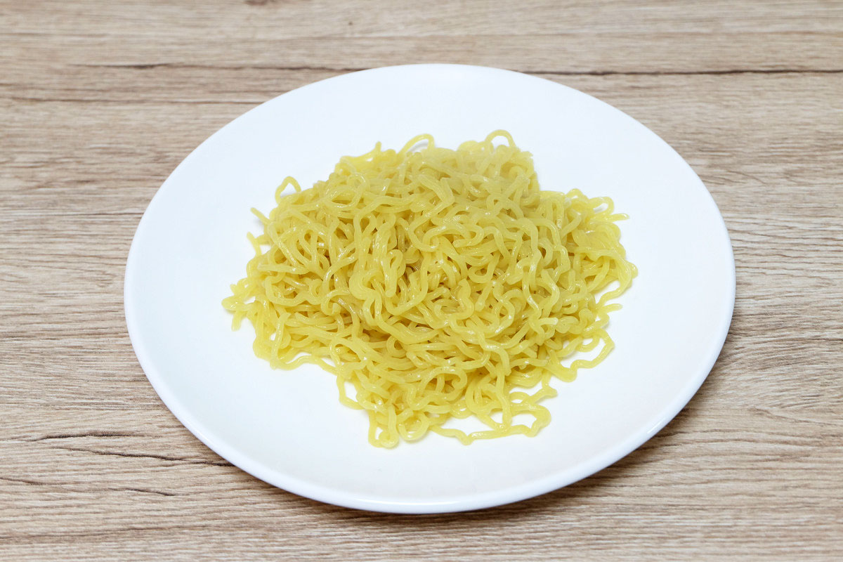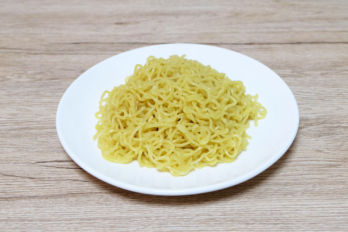 ゆで時間は2分40秒とし、しっかりと湯切りをして計測しました。