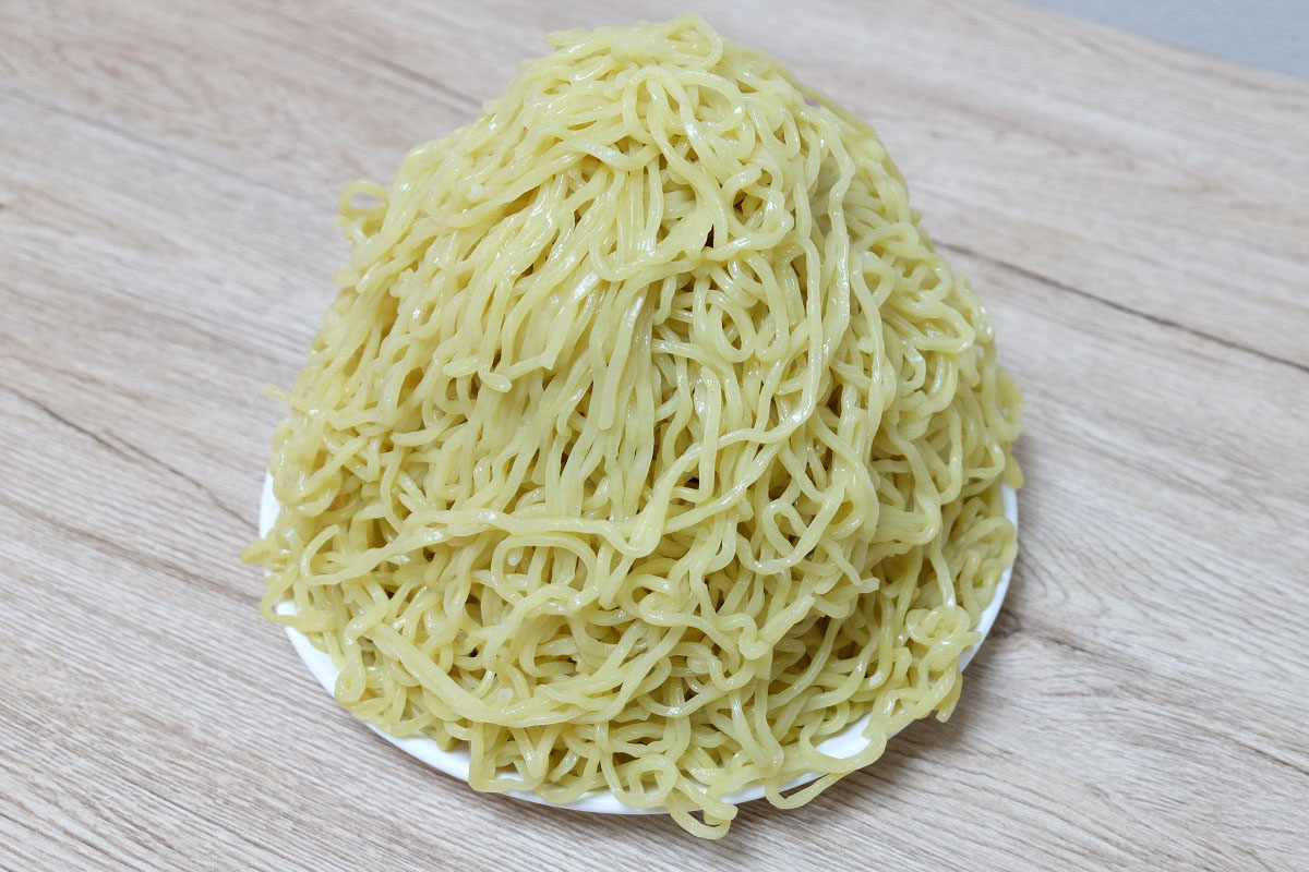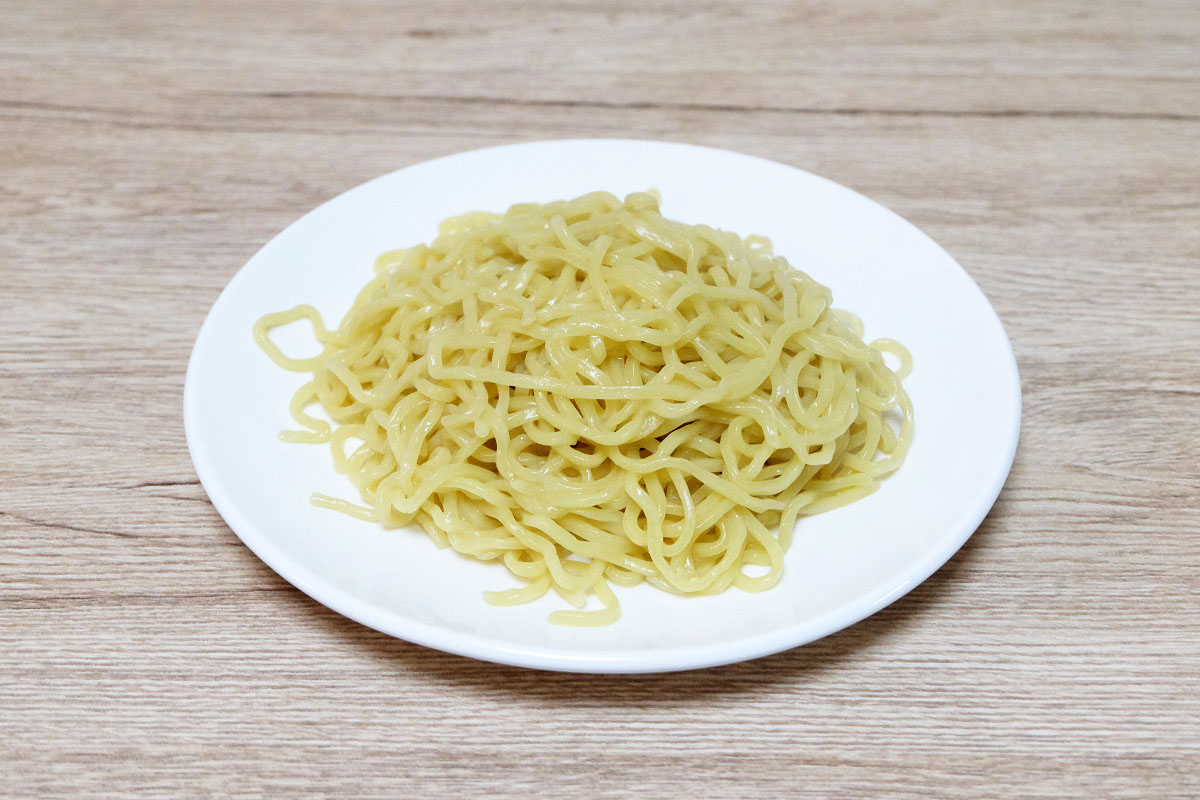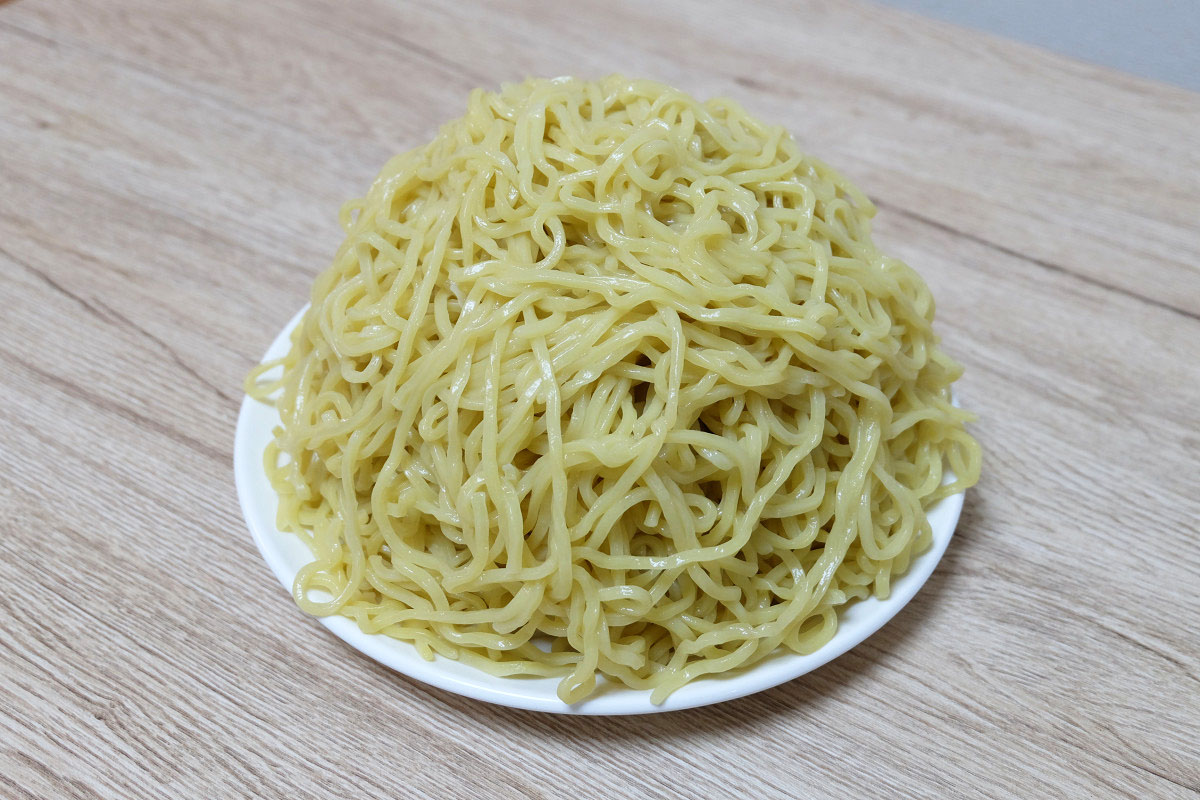 今回撮影に使ったのはスーパーで販売されていたこちらの「山岸一雄監修 つけ麺専用中華麺」です。