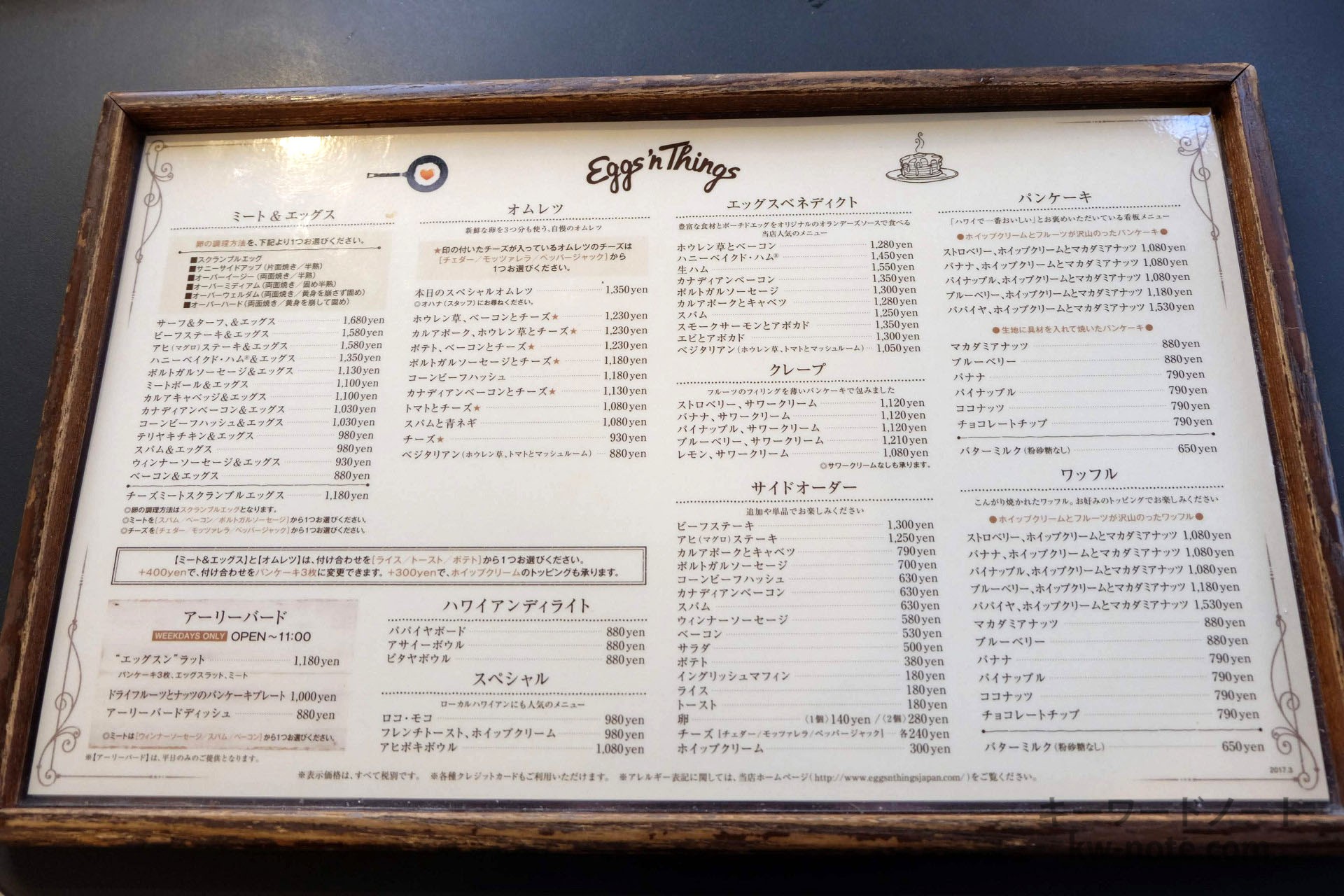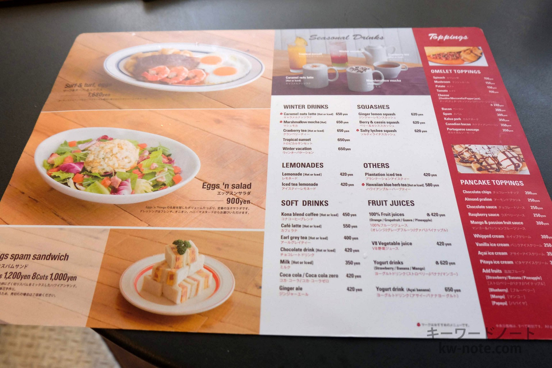 なお店名について、卵のエッグでなくエッグスンとなっていますが、これは英語で「Eggs ‘n Things」つまり「Eggs and Things」の略なので「エッグスン」です。
