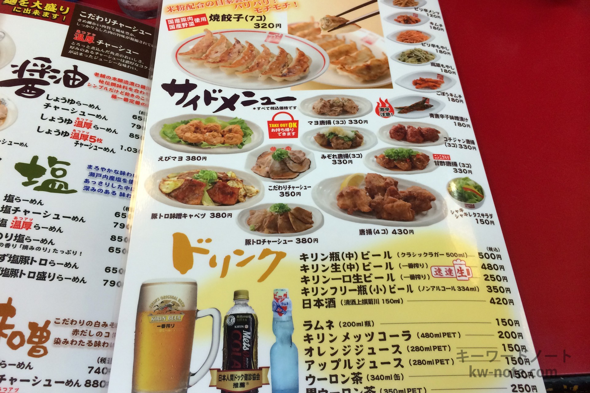 ラーメンの味は醤油・塩・味噌・とんこつ・辛味、台湾ラーメンもあるなど選択肢が多く『幅広い年代の方に長く愛されるオーソドックスな味づくりを基本』としていて食べやすい味に仕上げられています。