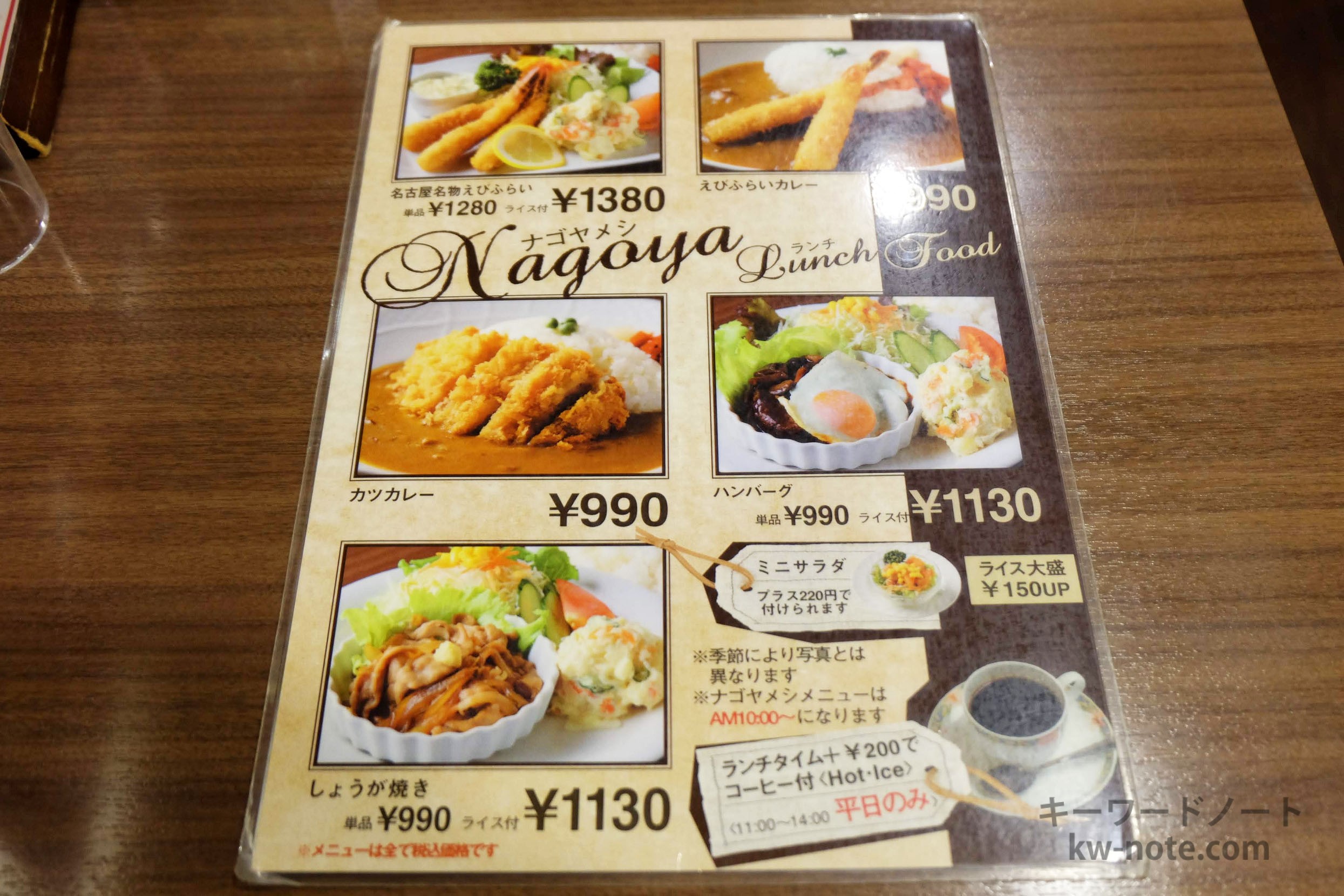 名古屋めしを食べておきたい場合は「鉄板ナポリタン」「小倉トースト」「あんかけスパゲッティ」「エビフライ」などがいいかと思います。