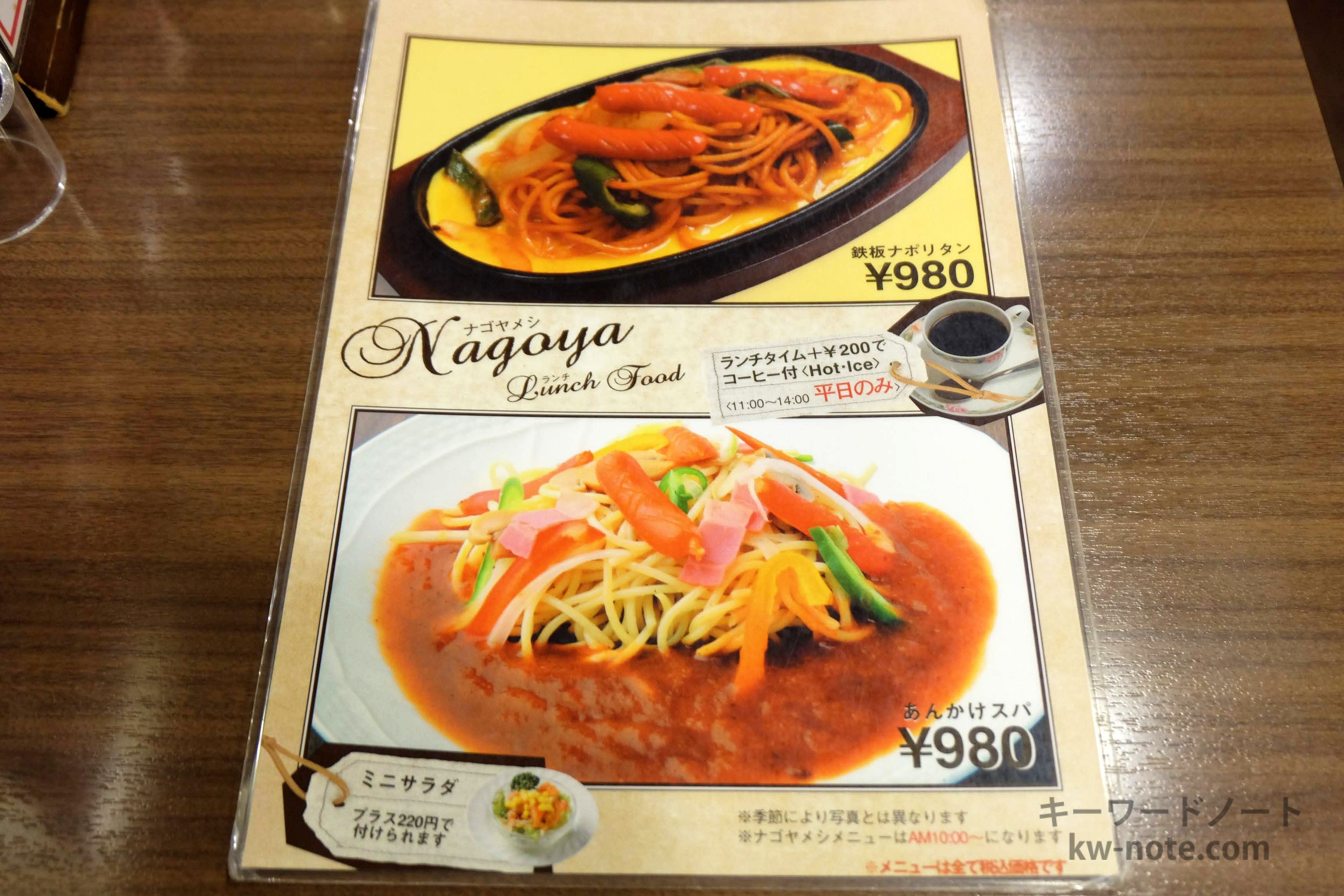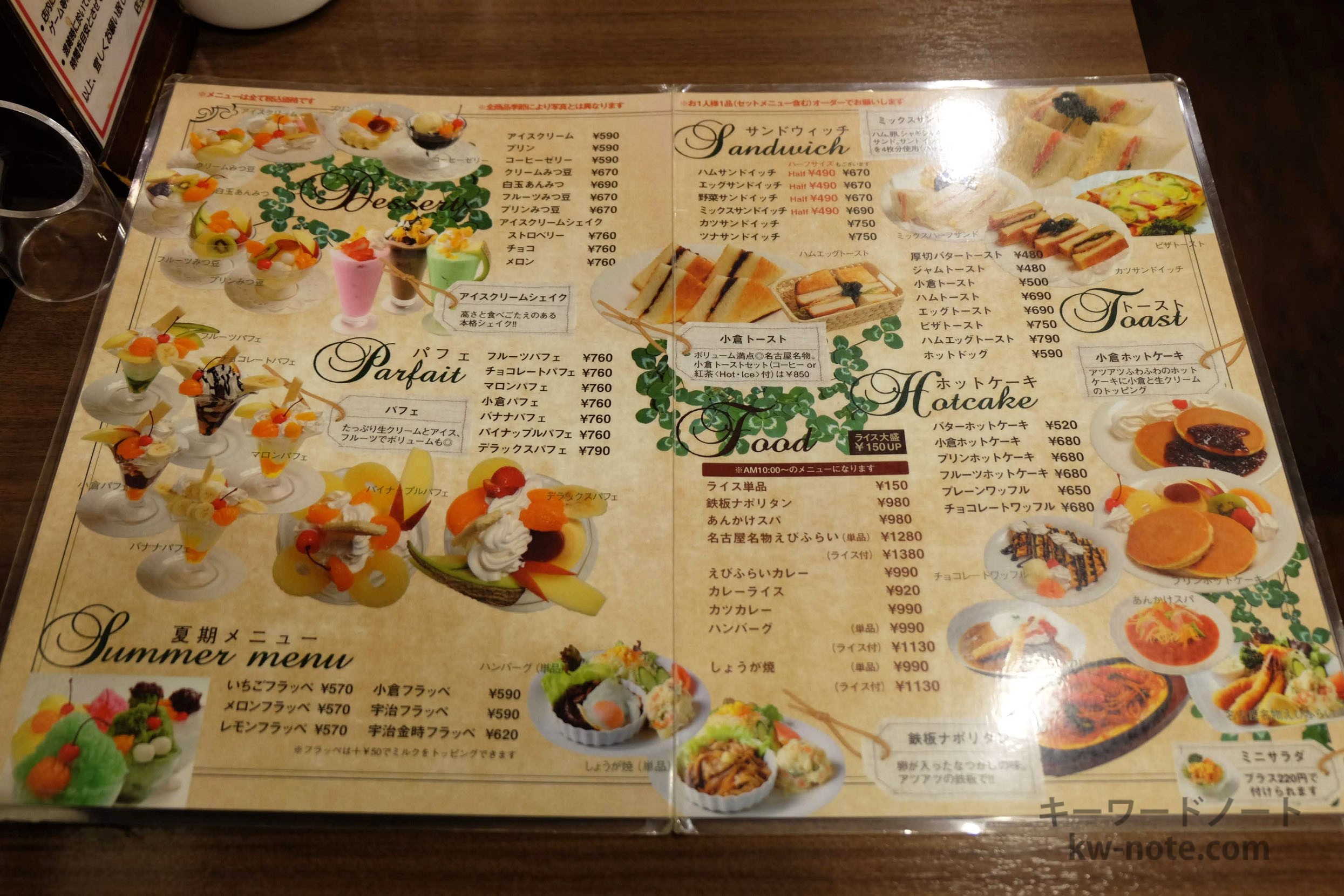 “名古屋めし” として知られる「鉄板ナポリタン」「小倉トースト」「あんかけスパゲッティ」などの他、もちろん古くからの喫茶店の定番も揃っています。