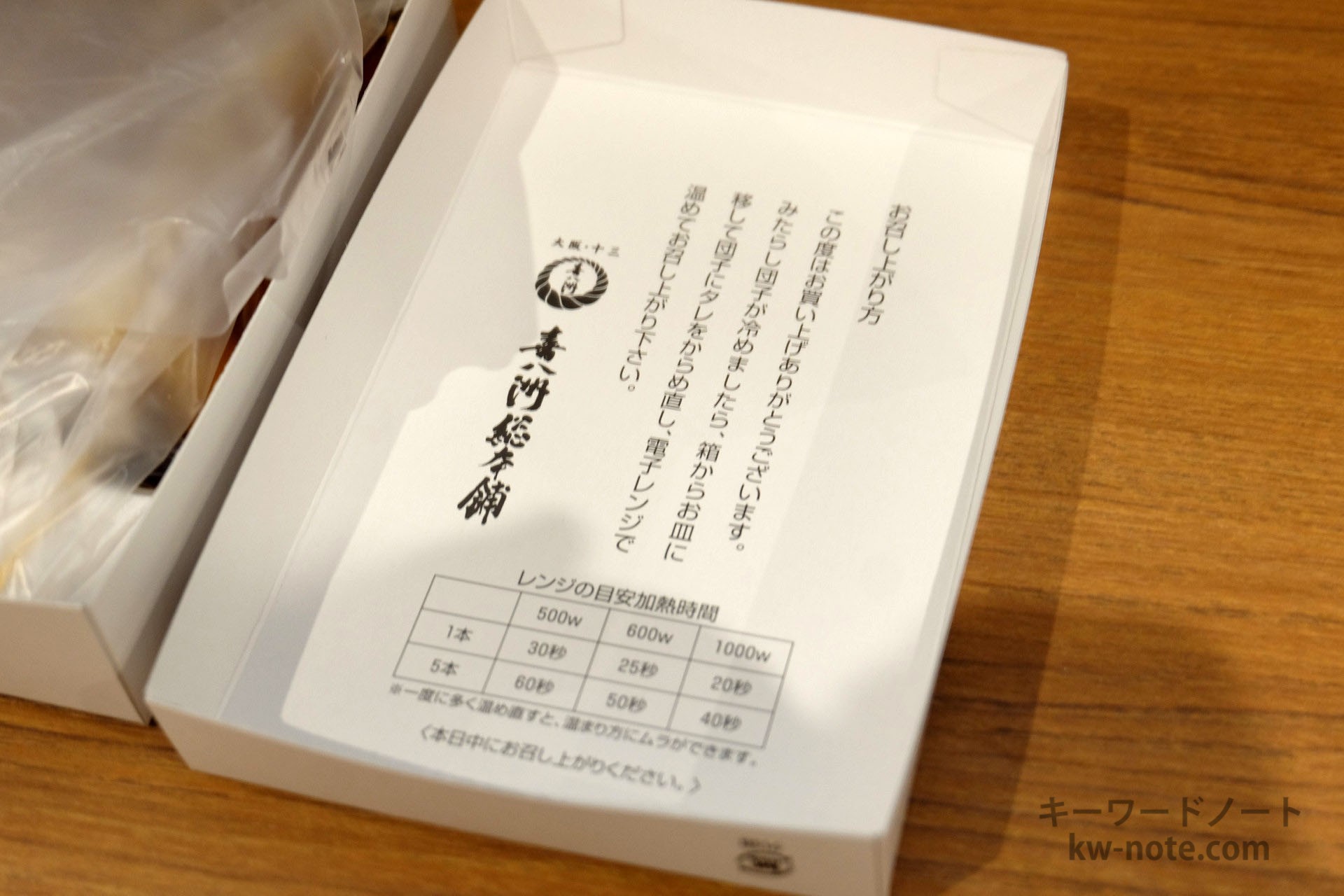 みたらしが冷めてしまったら箱の裏にレンチンの目安時間も書かれているので温め直すといいかと思います。