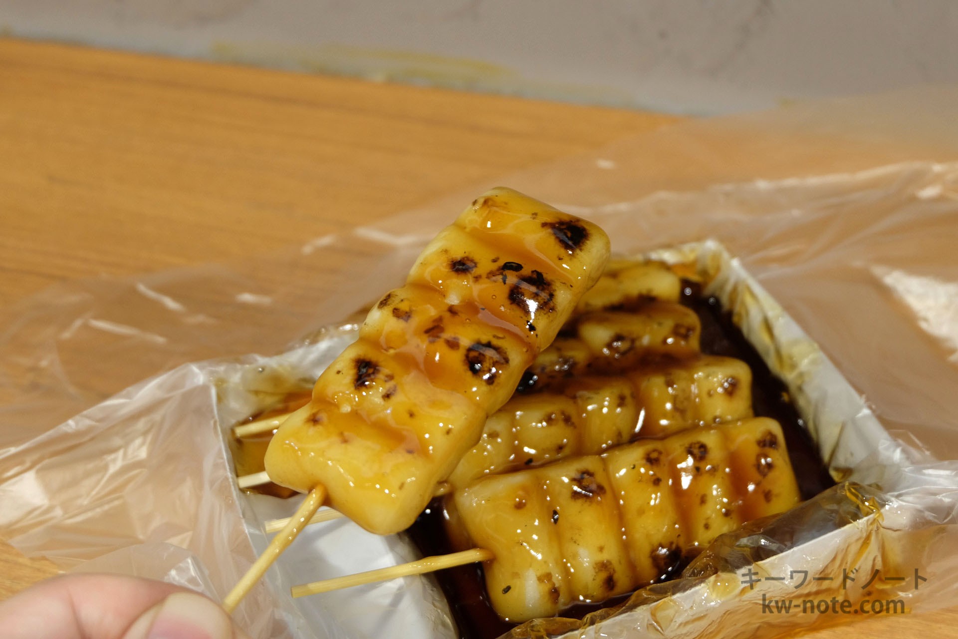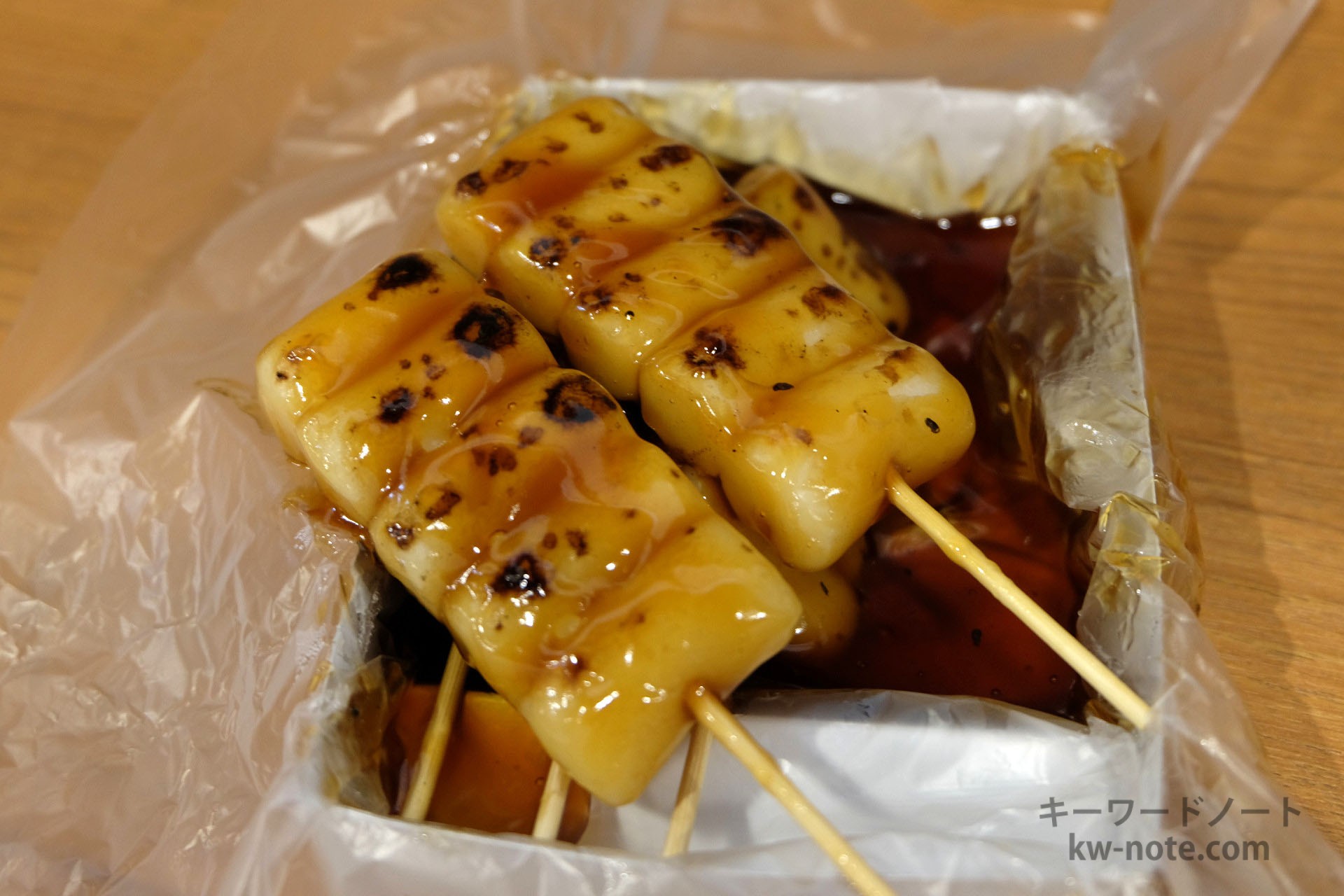 食べてみると団子はとても食べやすいは柔らかさ、タレは甘みが抑えられており、醤油のいい香りがよく感じられました。