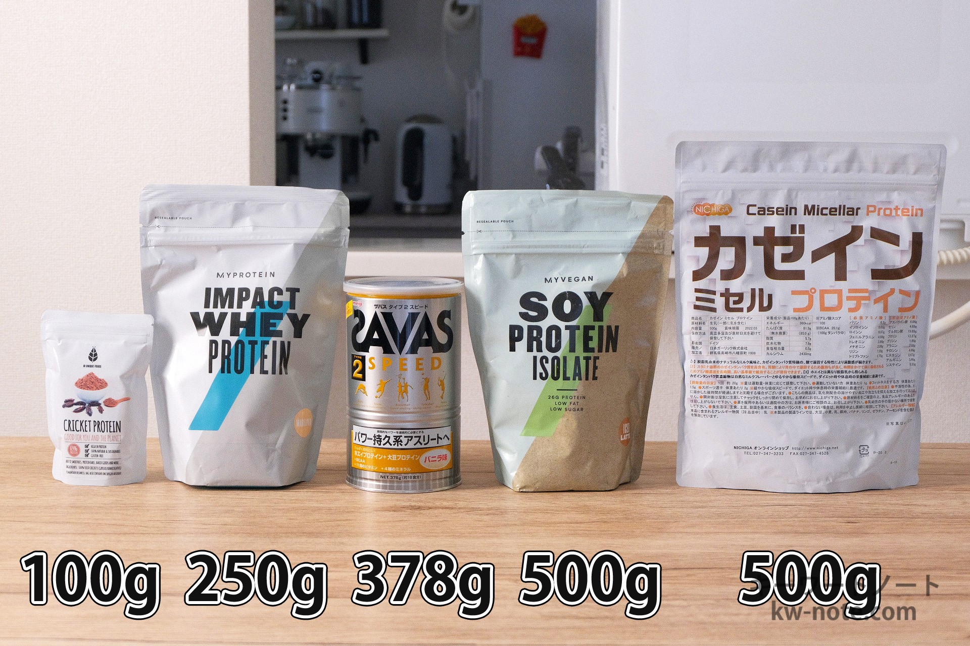 プロテインをネット通販などで購入する際に、何グラムとか何キログラムと重量の表記がされているわけですが、初めて買う商品だとそれがどれくらいの大きさなのかよくわからない場合があります。