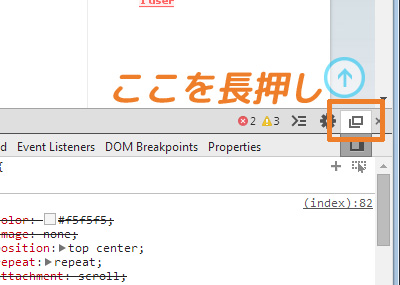 このデベロッパーツールですが、初期状態だと画面下にウィンドウが表示されます。